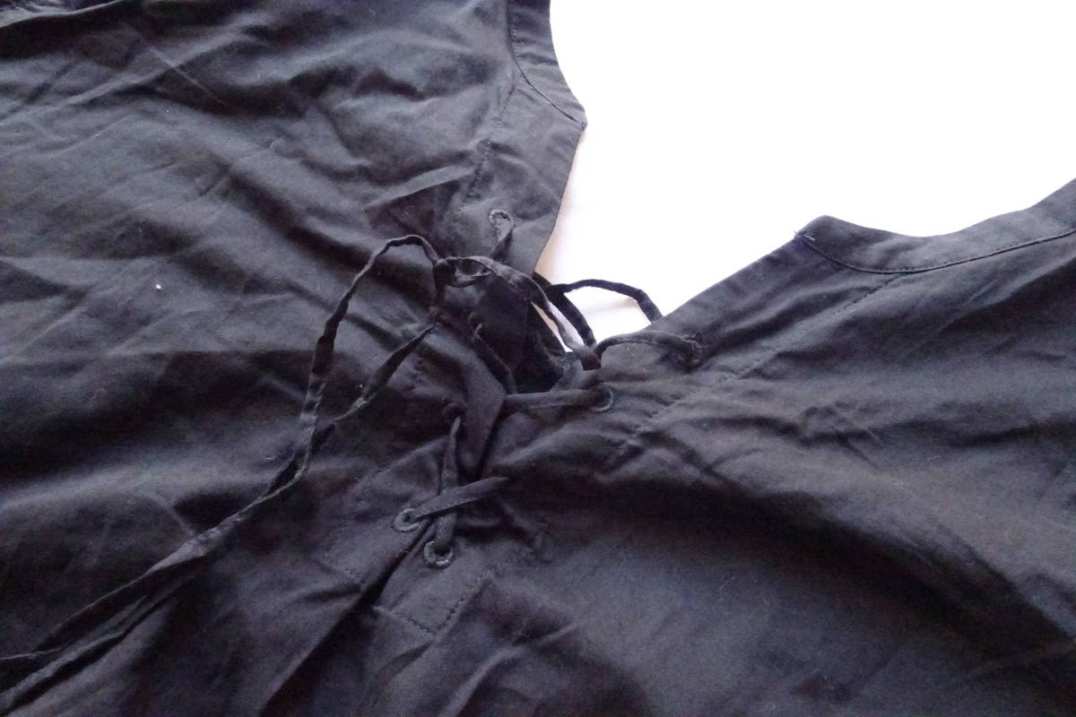 前後首ぐりはVネック、キーネック仕様で、キーネックはレースアップになっています。