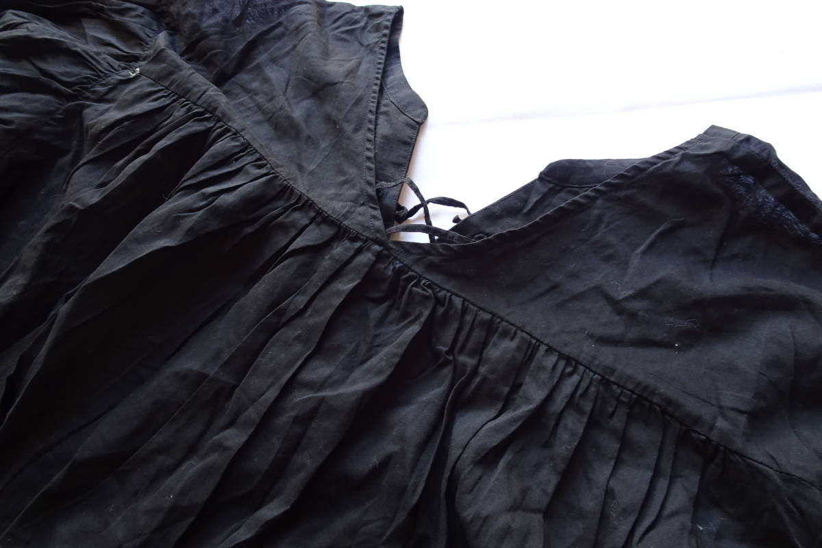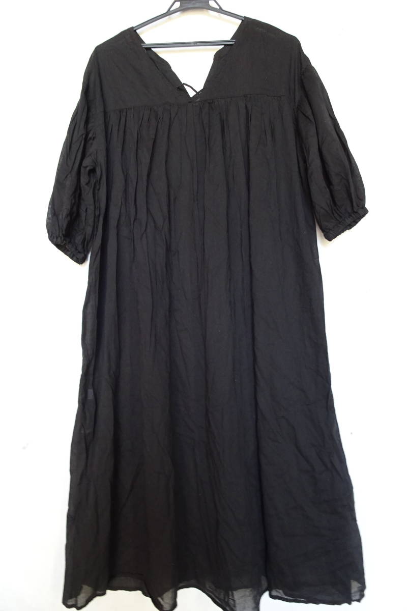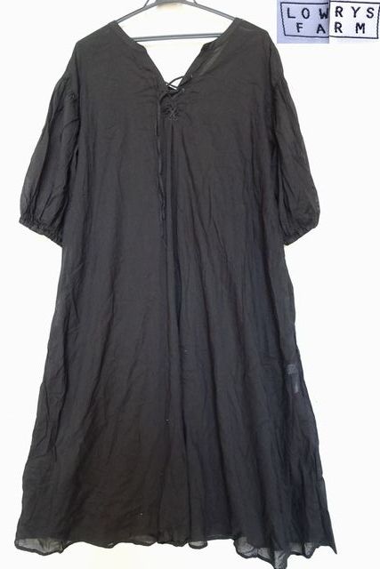 LOWRYS FARM/ローリーズファーム/7分袖ワンピース/フレアーロング丈/前後Vネック/薄手素材/透け感/黒/ブラック/フリーサイズ(9/5R5)