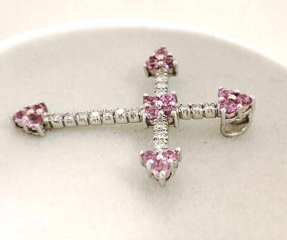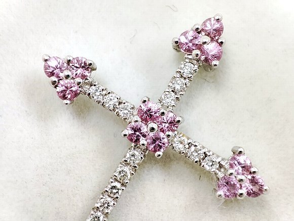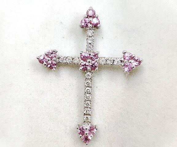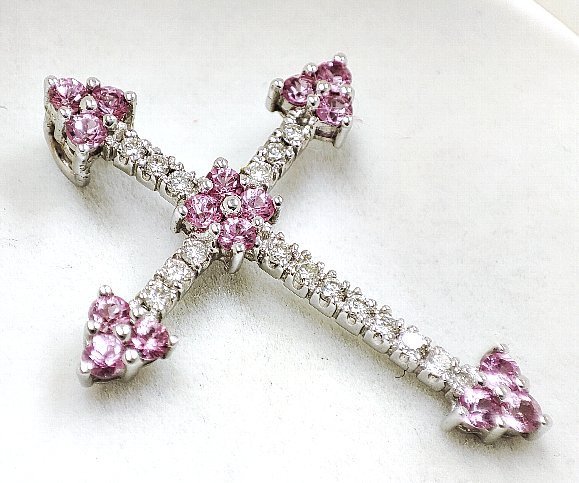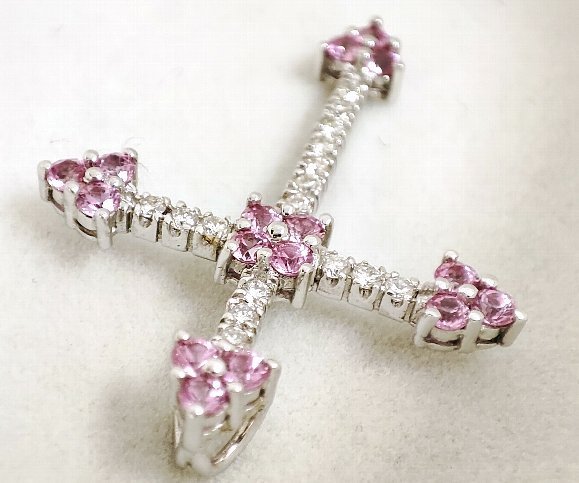 天然ピンクサファイア 天然ダイヤモンド クロスペンダントトップ |