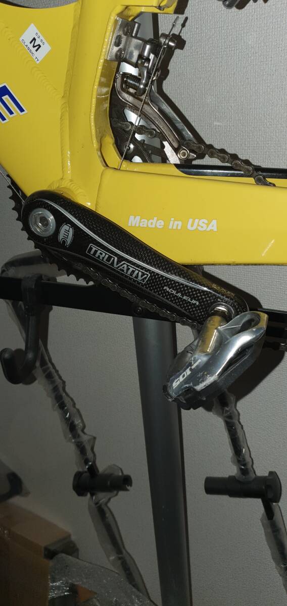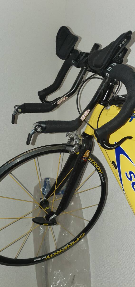 希少な車体となりました,SOFTRIDE ソフトライドのロードバイクです。室内保管の各部品(ペダル,ハンドル,サドル等)やコンポーネントは忘れてしまいお答えが出来ないですが,乗車に不具合はないと考えています。ドリンクボトルやツールボトル(ツールもあります)もお付けします。写真に写るU字ハンドル,必要であれば,室内保管用のポールもお付けします。ポールは落札時に要否をお伝え下さい。発送はヤマト家財宅急便を使用します。