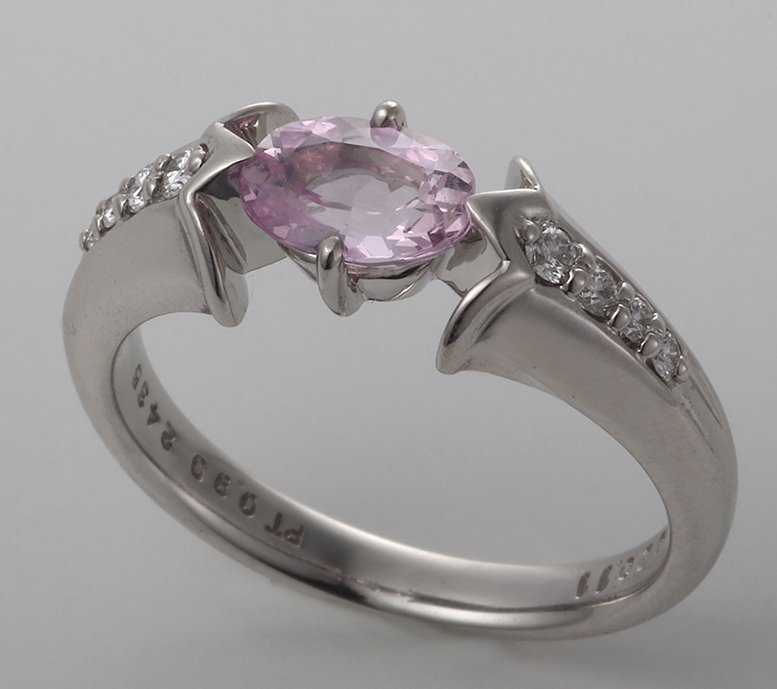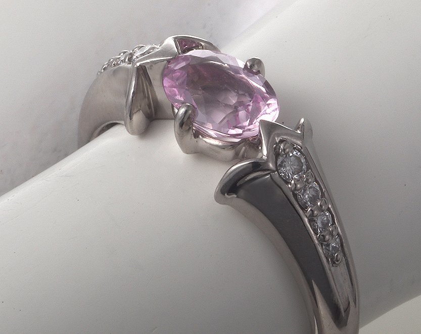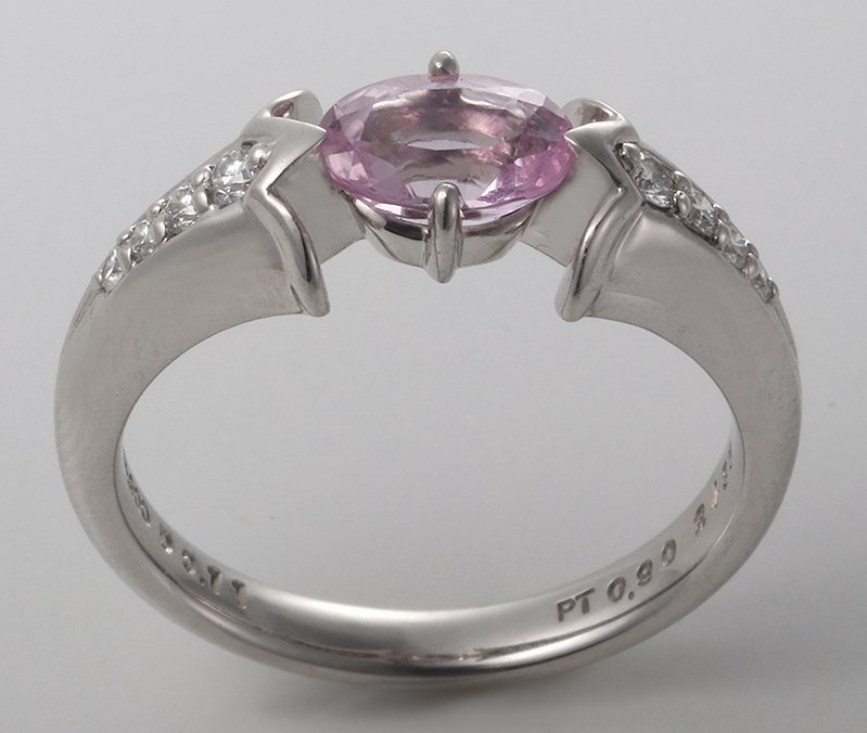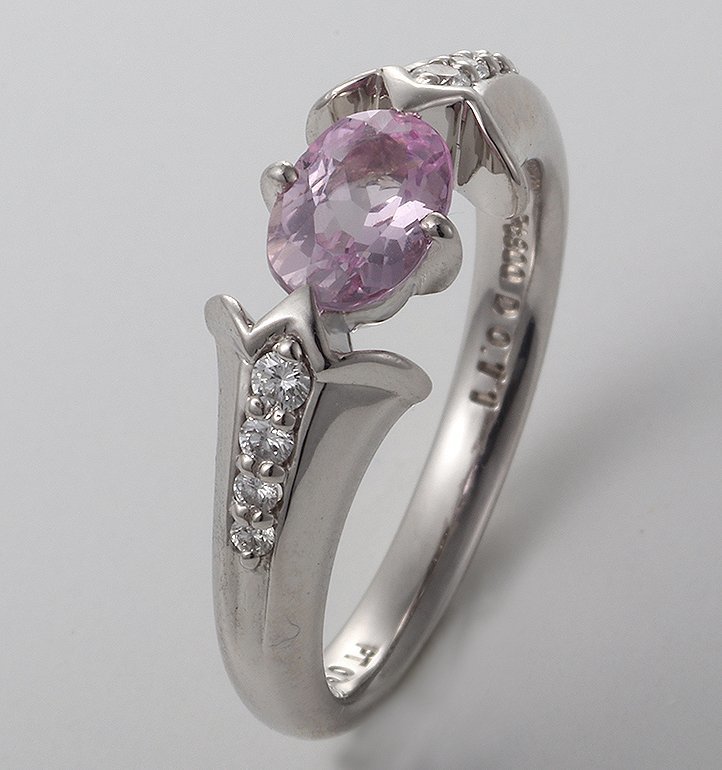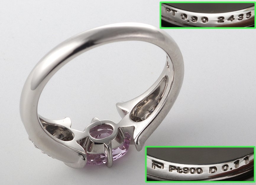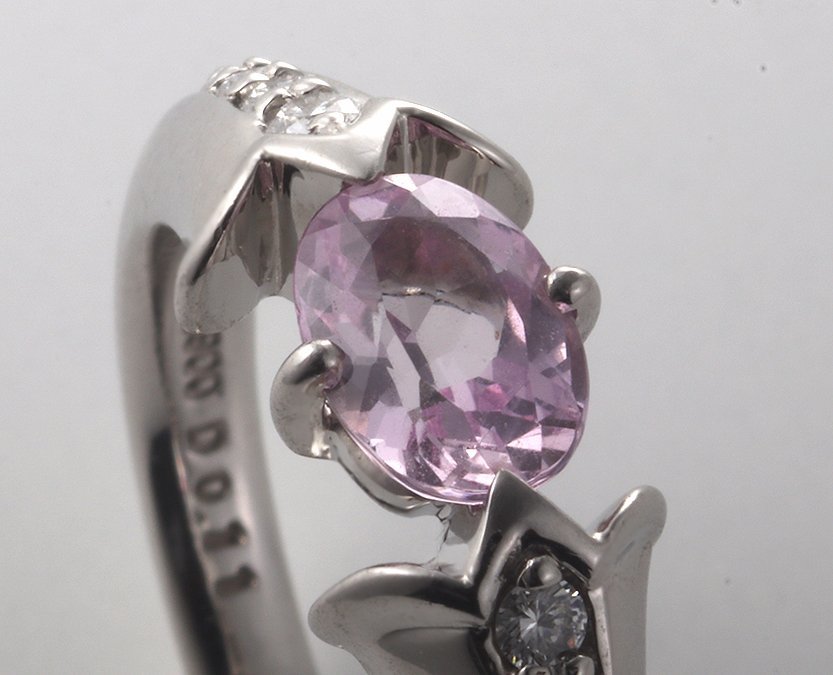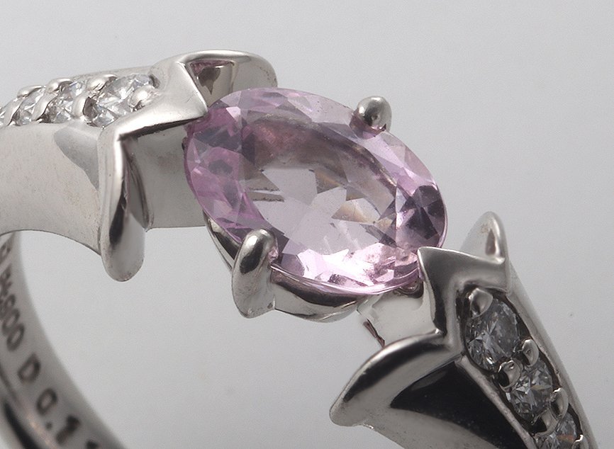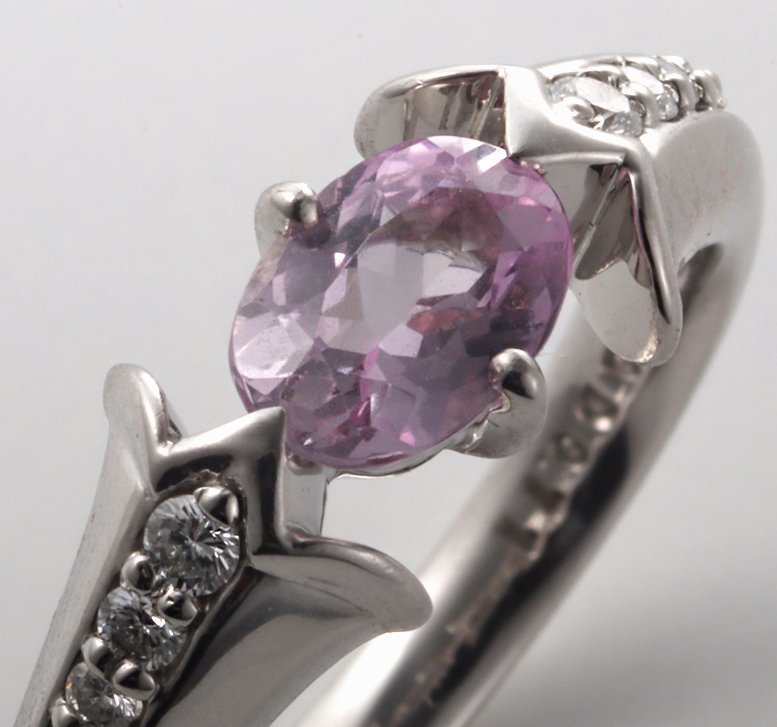 マテリアル | 天然ピンクトパーズ0.90カラット(カラット刻印あり)、天然ダイア計0.11カラット(カラット刻印あり)、プラチナ900製 |