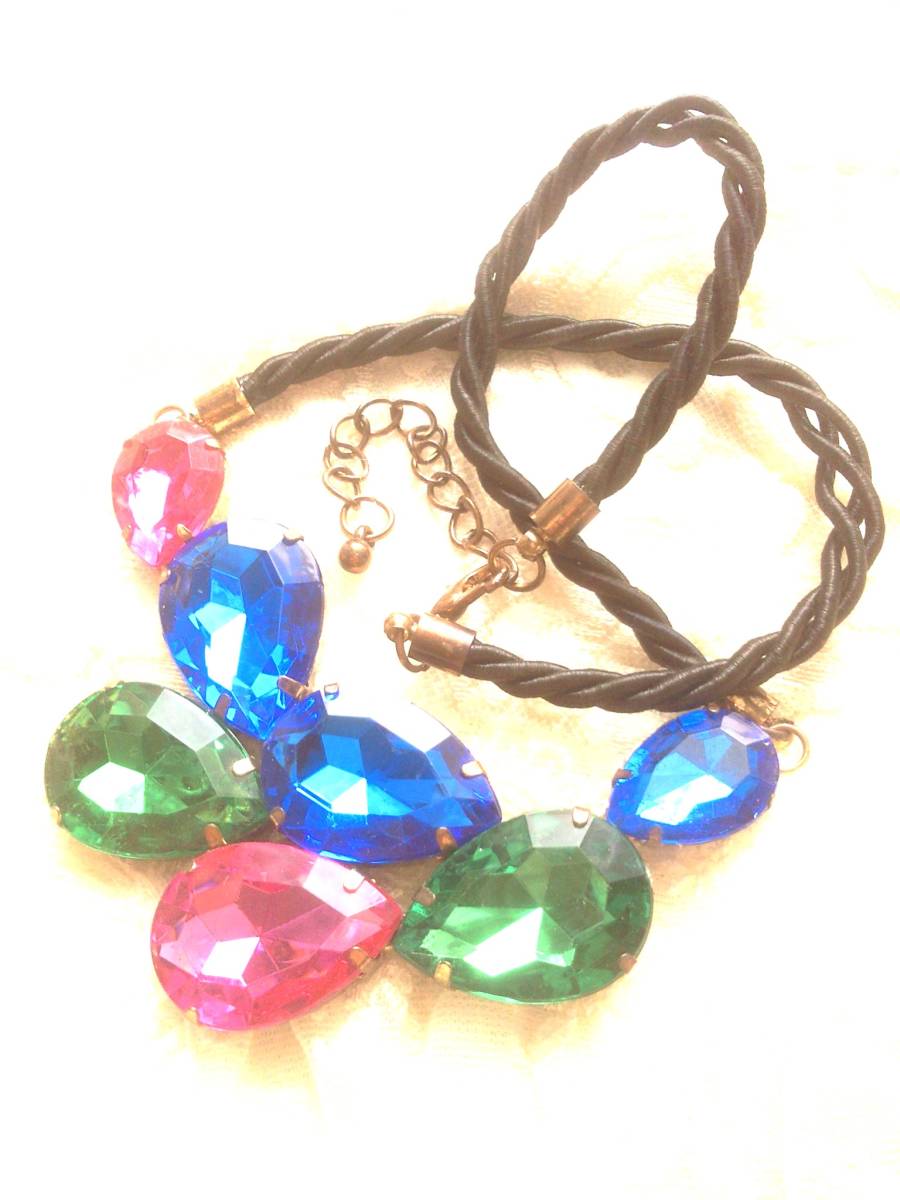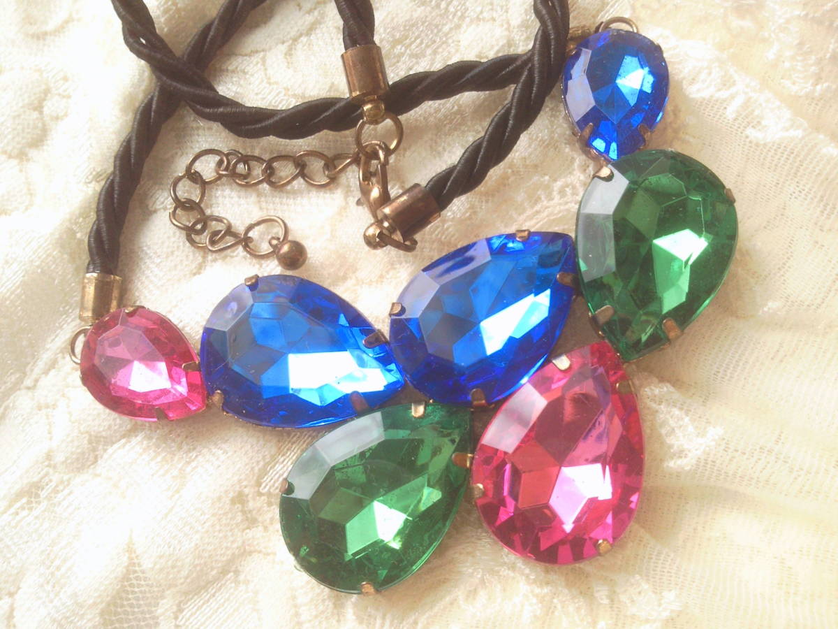 超特大♪宝石風ネックレス●装飾品キラキラ輝石コスチュームジュエリー首飾り●レトロ調ヴィンテージ品アンティークジュエリー●送料無料