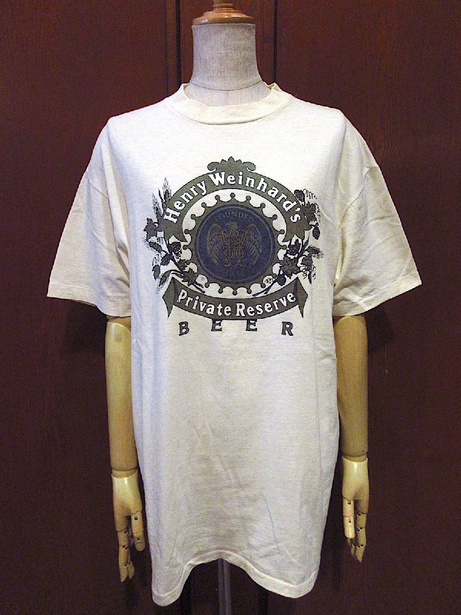 ビンテージ80's●Henry Weinhard's BEER Tシャツ生成りsize L(42-44)●230821c9-m-tsh-ot 1980sヘンリーワインハードビール半袖古着