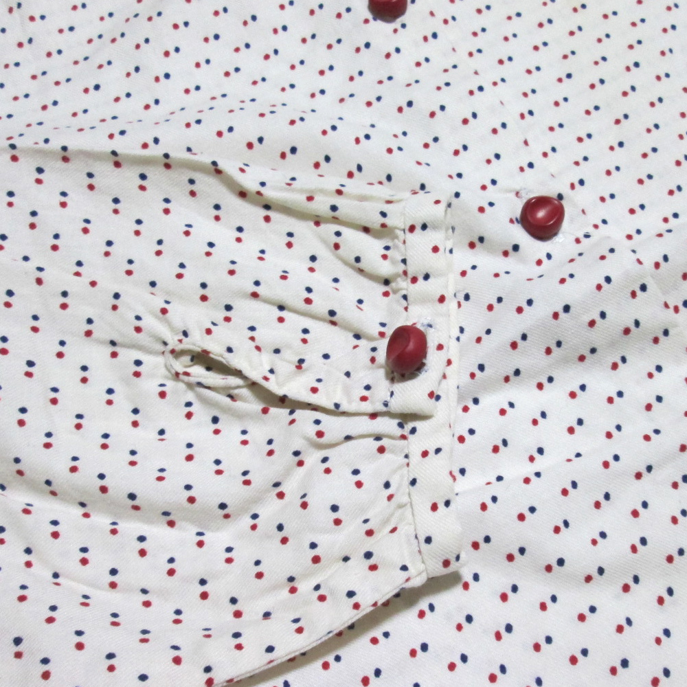 首まわり、袖口等に汚れが若干、脇下に薄いしみがあります。