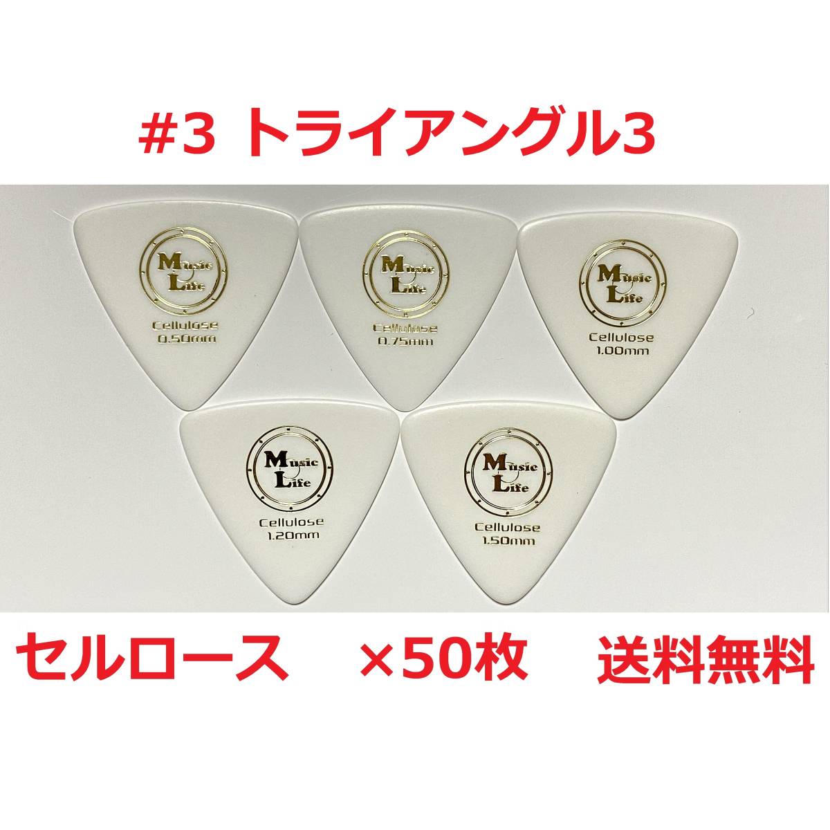 【MLピック】#3 トライアングル3 Celllose(セルロース)ピック 【1.50mm×50枚】送料込み