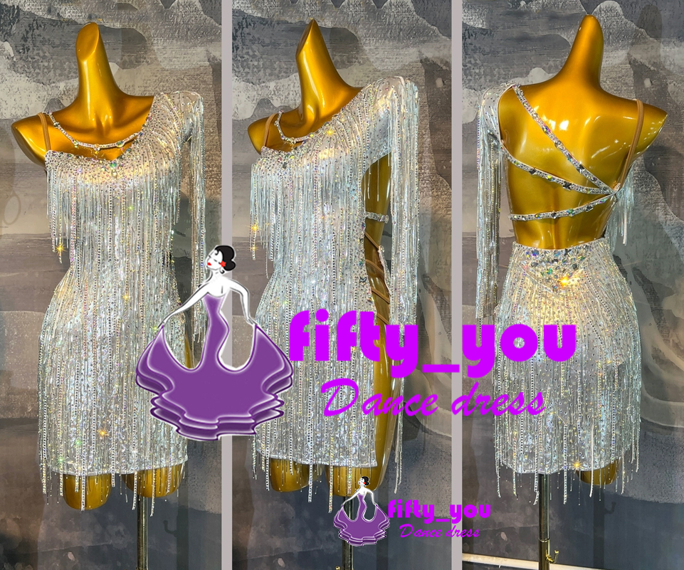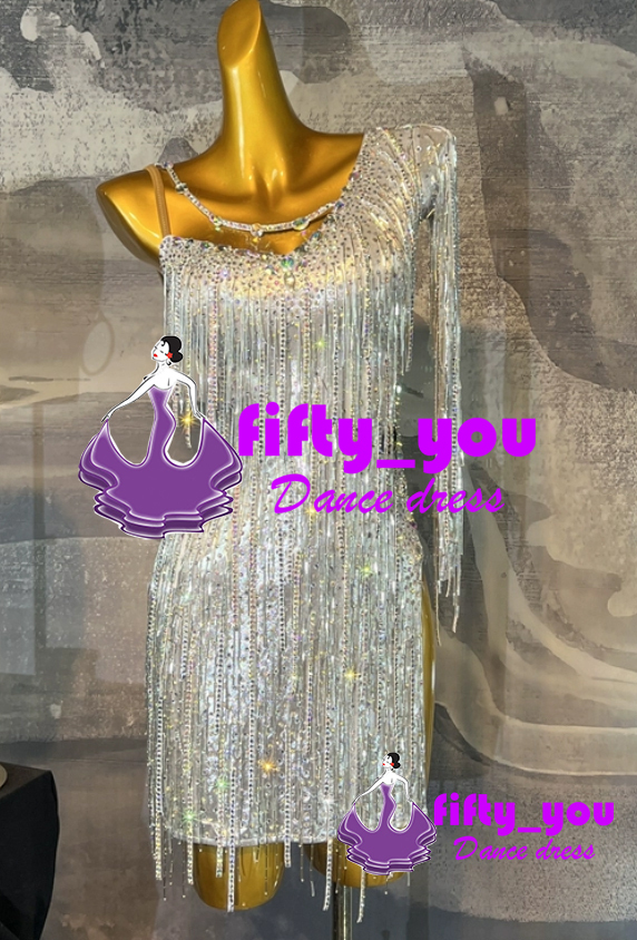 新品fifty_you レディース社交ダンス衣装 サイズセミオーダー  キラキラライトストーン+ビーズ飾り ラテンドレス 競技試合ドレス 高級品