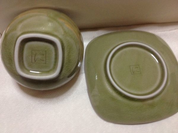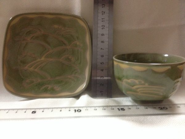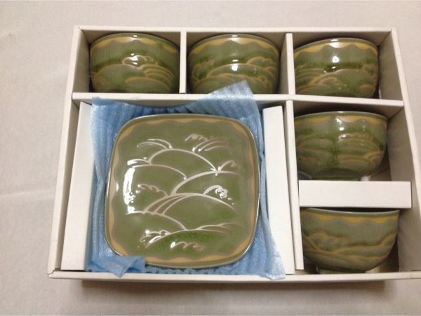 | 沢山出てる中観て頂き有難う御座います。 お約束事項は必ず読んで頂いて納得しての 入札をお願い致します。 お約束事項 新規の方もしくは評価が5以下・評価の悪いが3以上の方 評価が5以下の方は入札をお控え下さい。 大変不本意では御座いますがお断りしております。 上記に心当たりの方で 入札をお考えの方は、お手数をお掛け致しますが質問欄より 購入意志がある事をお知らせ下さい。 知らせが無い場合、大変不本意では御座いますが 消去させて頂きます。 (トラブル防止の為宜しくお願い致します) ※消去する方・される方気持ちのいい物では御座いません。 必ずお約束事項は守って下さいませ。 入札の際はくれぐれも不明な点があった場合は 先にご質問下さい。 (当方の回答を確認してから入札してくださいませ。) オークション終了から24時間以内に お届け情報を頂けない落札者様は入札は なさらないで下さいませ。 48時間以内にご連絡が御座いませんでしたら 落札者様の都合によりキャンセルとなり ヤフオクのシステム上 大変悪いとなります。 商品説明 未使用の保管品 高級感のある緑色の湯飲みと お皿のセットです。 箱に入れたまま保管しておりました。 中に入っていた説明書が御座いませんので 詳細が分かりません。 食器の裏に に とあります。 箱には擦れ・下の箱には変色が御座います。 サイズ等画像にって確認お願い致します。 細部まで気にされる方の入札はご遠慮下さい。 お譲りするのは画像にあるもののみです。 また量産品ですので初期からの擦れやこきず ペイントのムラ等はご了承ください。 多少の擦り傷や経年劣化もある中古品で ある事を考慮して入札下さい。 自宅保管の為 商品説明欄を最後までお読みいただき、 納得された上での入札をお願いします。 ノークレーム・ノーリターンでお願い致します。 ※終了後当方からのご連絡から48時間以内に ご返信が無い場合、 取引意思が無いものと判断し落札者都合で 削除させて頂きます。 ご承諾下さい。 その場合、落札者の都合によりキャンセルとなり、 非常に悪いとなります。 支払方法 かんたん決算 お振込期限:3日以内(土・日曜日省く) 発送詳細 ゆうパック…都道府県によって異なります。 発送方法や金額は目安で御座います。 記載しておりましても変わる場合が御座います。 お振込確認後、3日以内に発送予定 配達中の事故の破損・紛失・盗難・ 未着は責任致しかねます。 包装は再生紙を主に使わせて頂いております。 ※定形外金額範囲でしっかり梱包させて頂いております。 また、割れ物・繊細な商品につきましては 相談させて頂いての発送となります。 食玩等のお箱の有る物は、プチプチではなく ダンボールを切って 箱を保護しての発送となります。 見た目は悪いかも知れませんが、 お箱が潰れない様発送させて頂きます。 落札された後、他に気になる物が御座いましたら 同封・お取置きいたしますので取引ナビにてお伝え下さい。 *出品者、落札者様お互い忙しい中での お取引となっております。 お約束のお振込みなどの変更が御座いましたら 取引ナビでのご連絡を必ずお願い致します。 ※入札が入って無い場合、こちらの都合で 申し訳御座いませんが オークションの取り消しをする事が御座います。 宜しくお願い致します。 他にも出品しておりますので、 良かったら覗きに来て下さい。 | | |