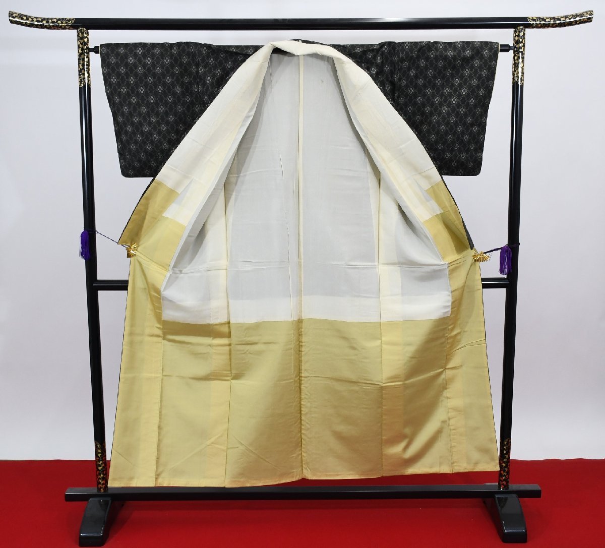 ▼身丈 (背中から) 146cm ▼裄丈 64.5cm ▼袖丈 45cm ▼後巾 28.5cm ▼前巾 24.7cm |