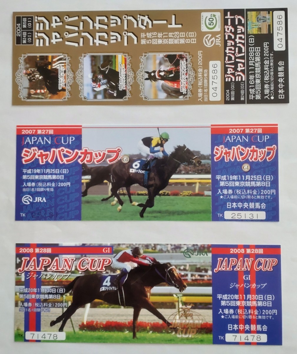JRA ジャパンカップ入場券 2004、2007、2008年 写真:ディープインパクト、アドマイヤムーンなど