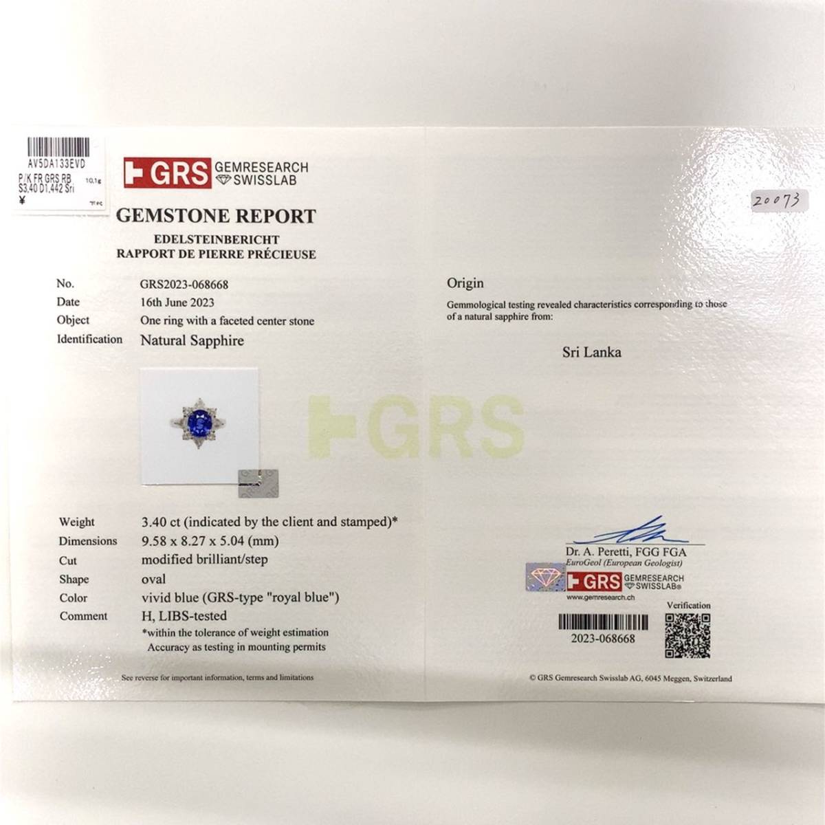 付属品 | GRS鑑別書 |