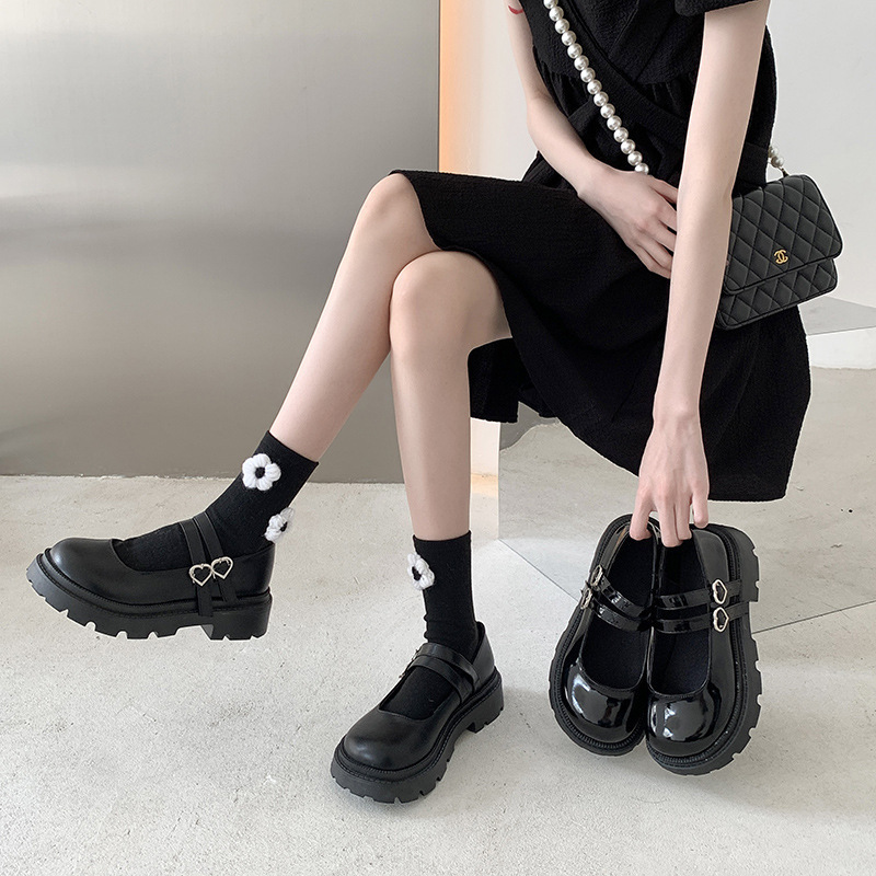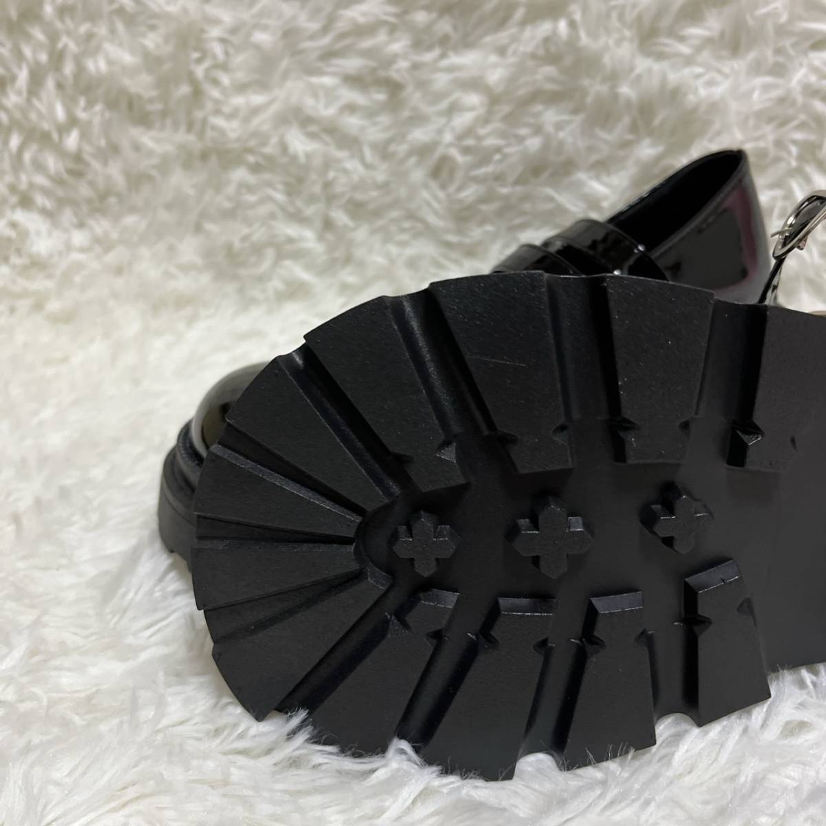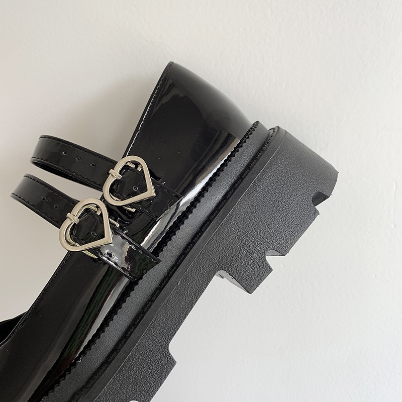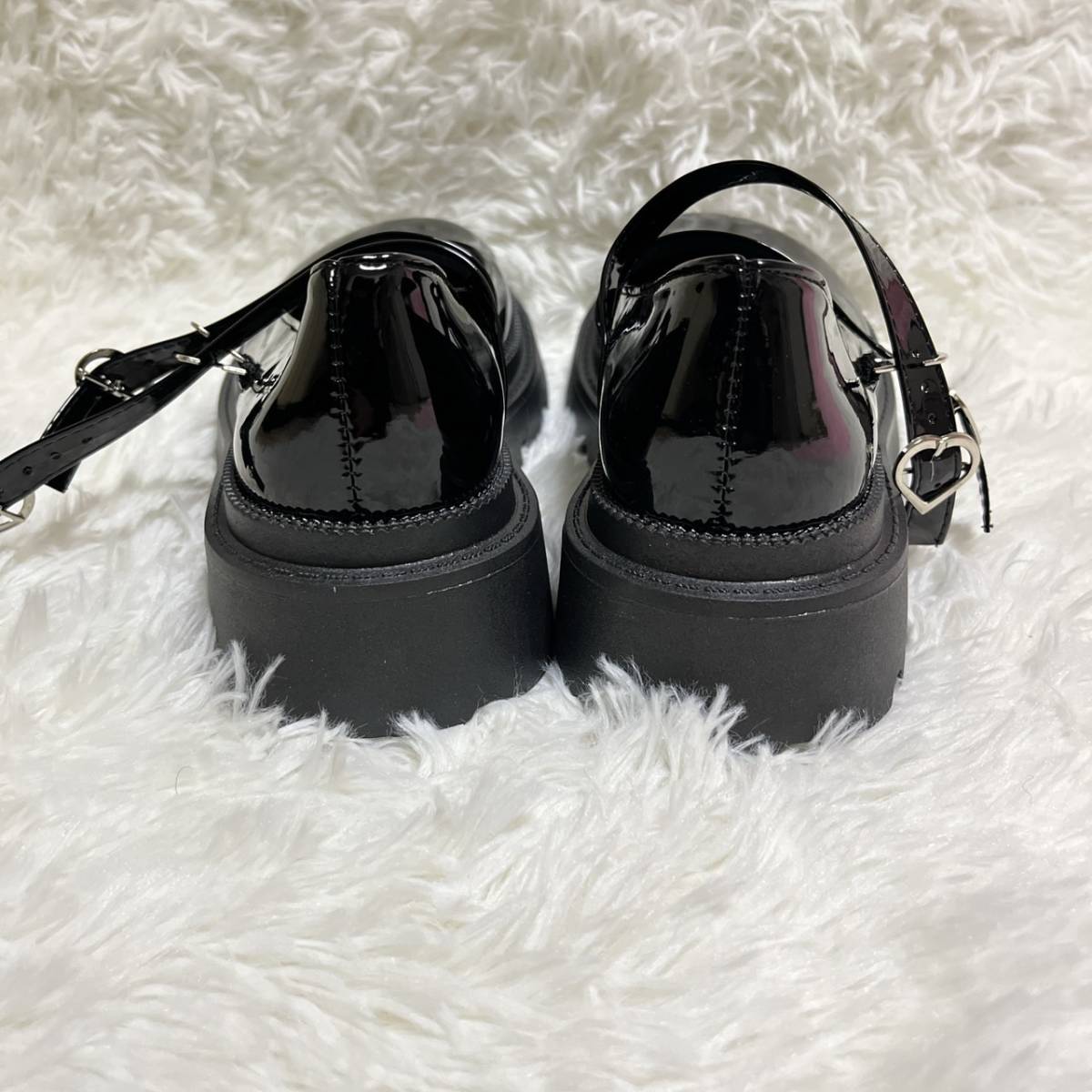 23.5cm レディース 量産型 厚底 パンプス 地雷系 ハートバックル 可愛い 靴 シューズ エナメルブラック 500 M11