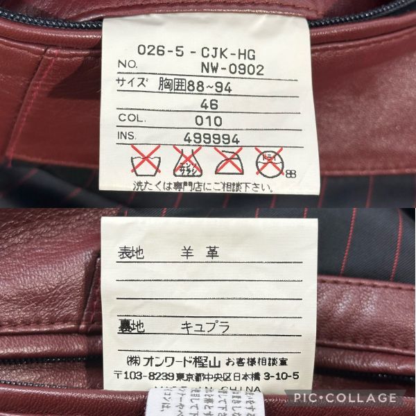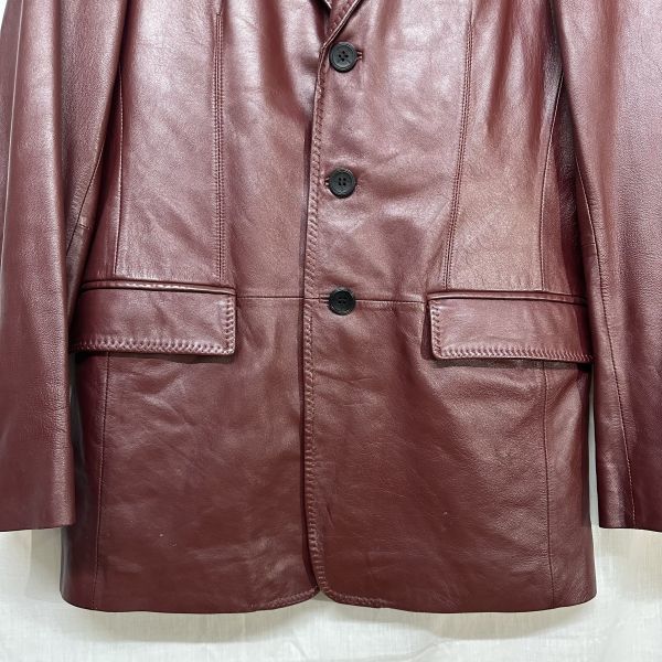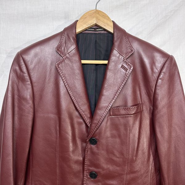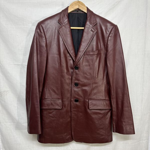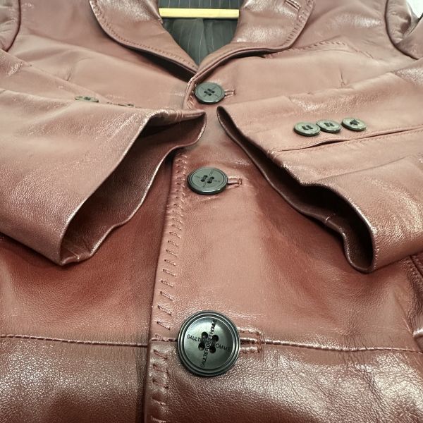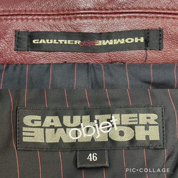 〇GAULTIER HOMME Objet ゴルチェオムオブジェ レザーテーラードジャケット 026-5-CJK-HG NW-0902 ラムレザー レッド系 46