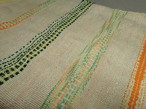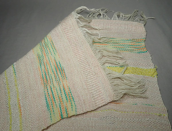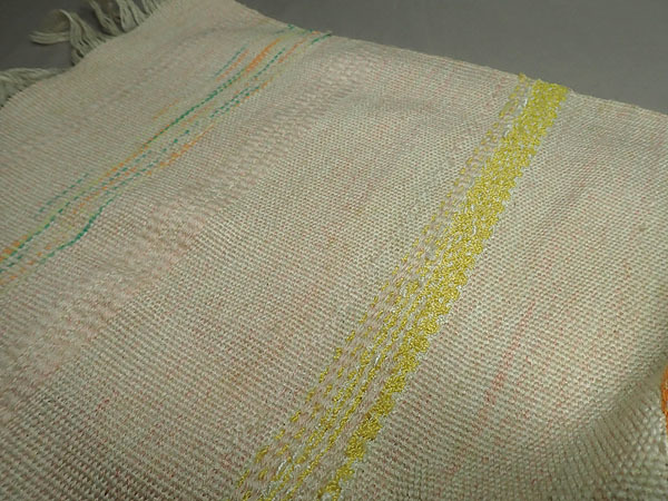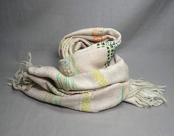 ハンドメイド【オリジナル織物 マフラー 126cm】横縞 ボーダー 手織物 織り機 作家物 生地 ナチュラル