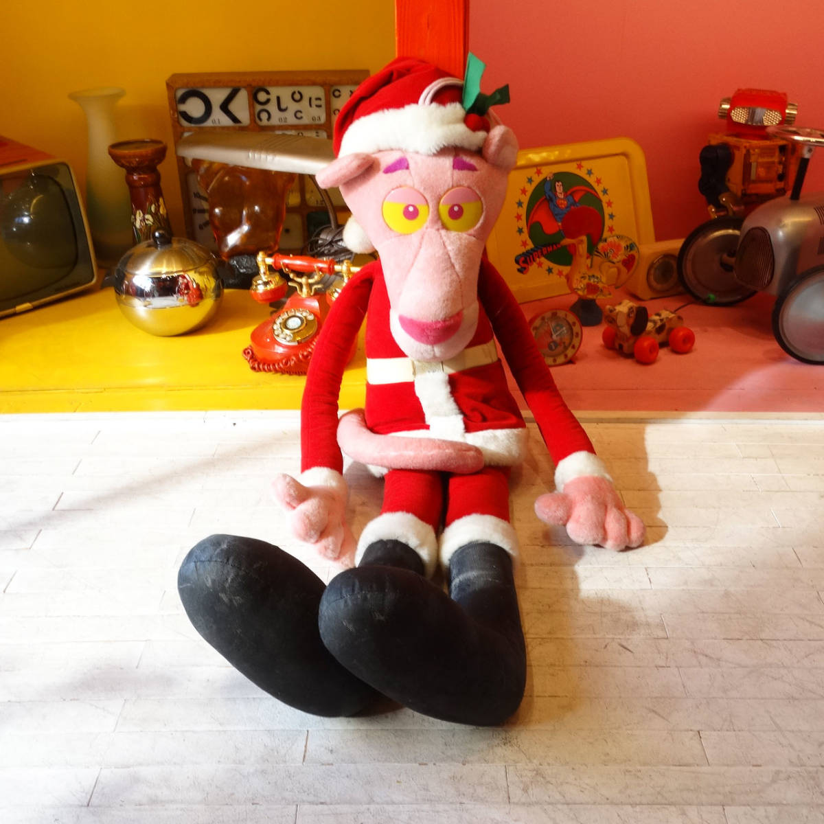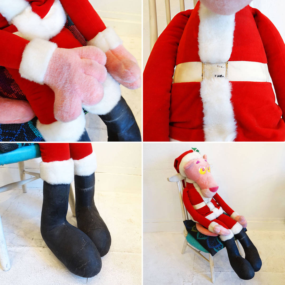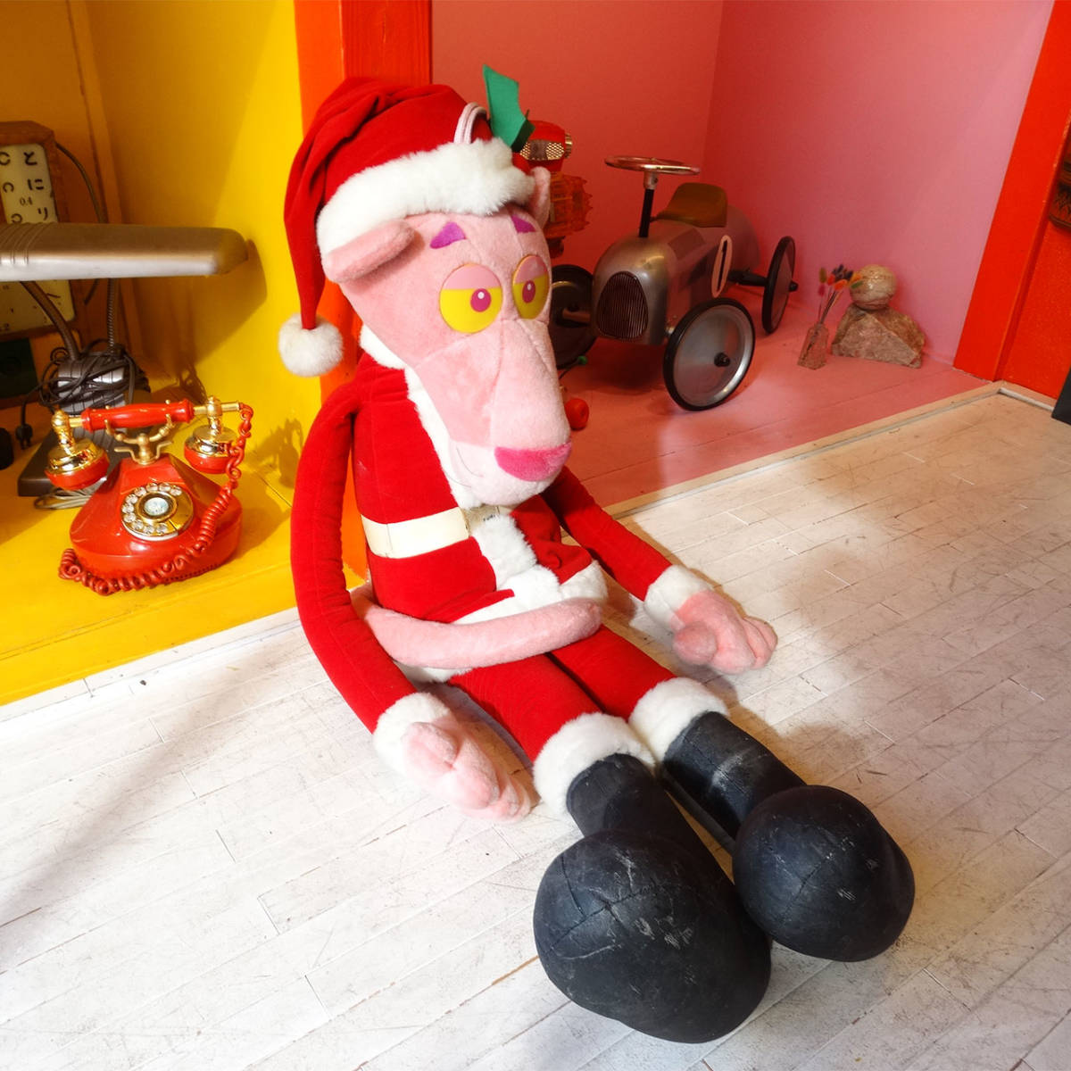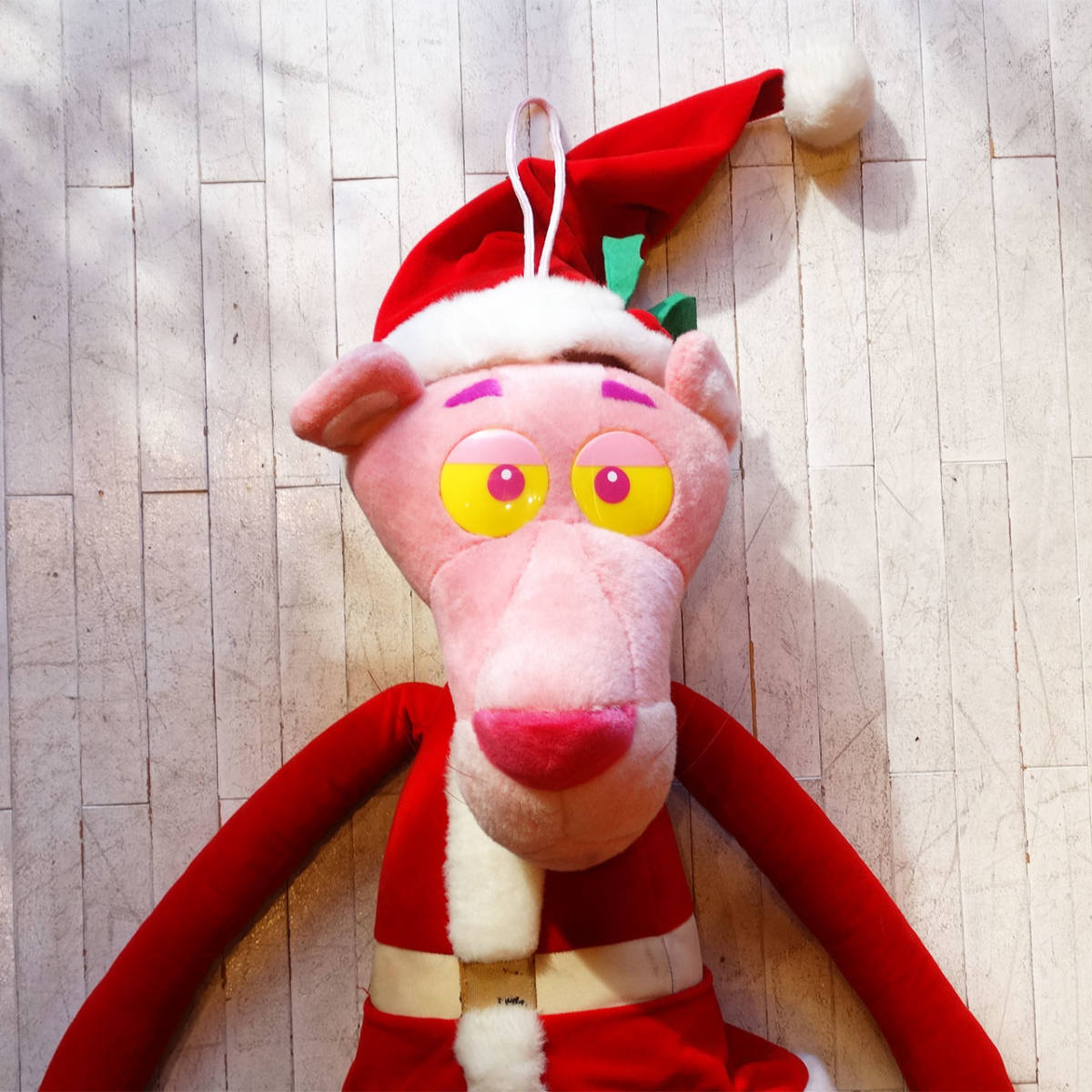 サンタの恰好をしたビッグサイズのピンクパンサーの人形でございます。