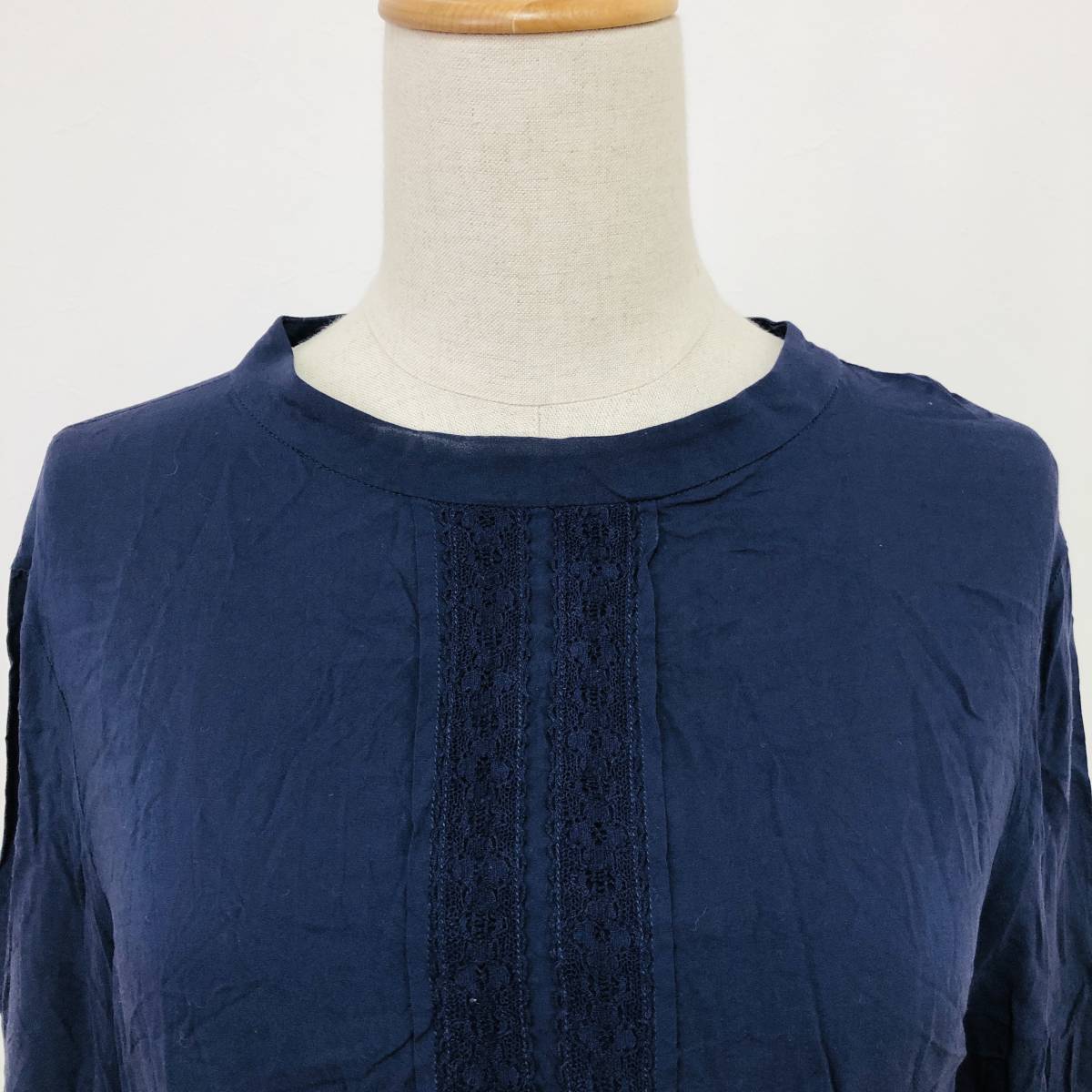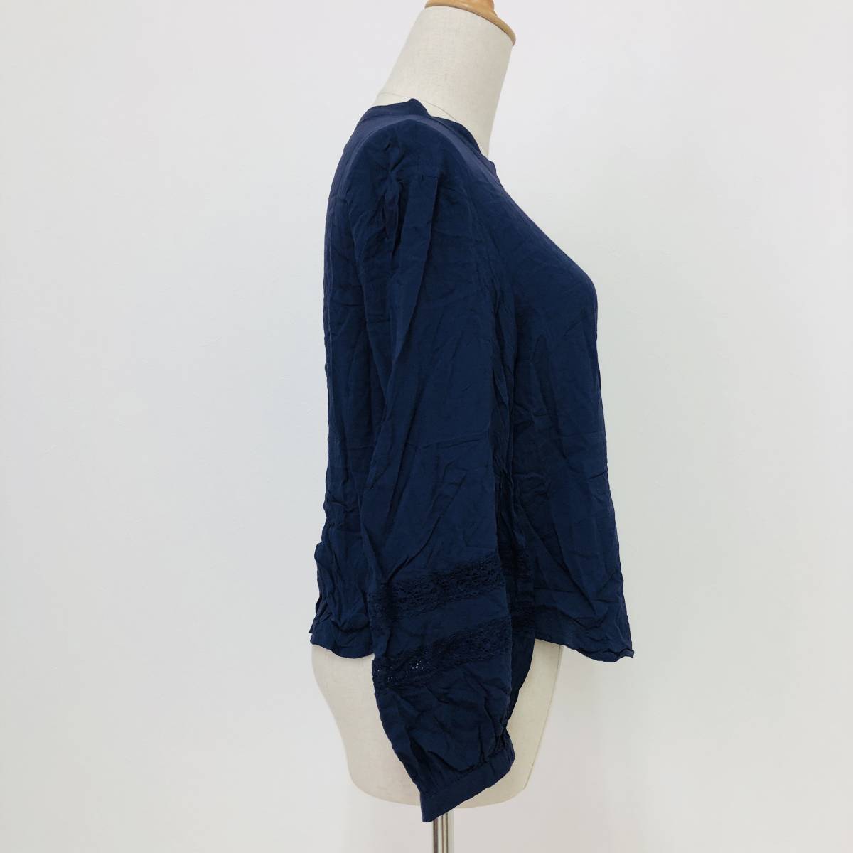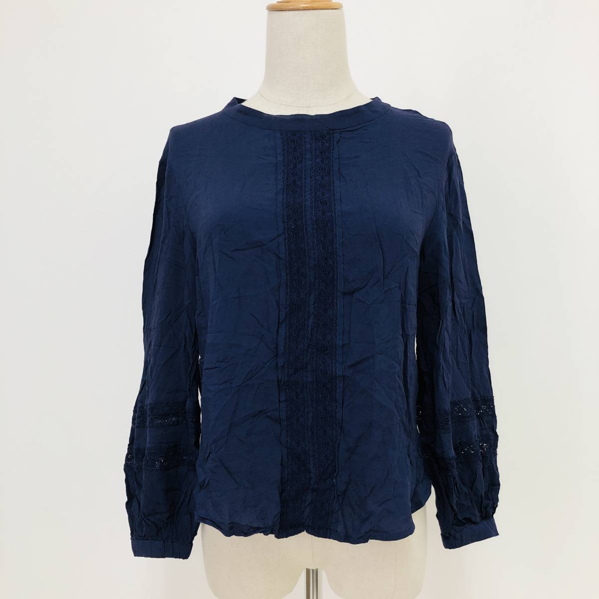 k1966 sunauna スーナウーナ レディース ブラウス カットソー 長袖 薄手 透け感 レース 38 ネイビー 上品 古着 エレガントガーリーチック