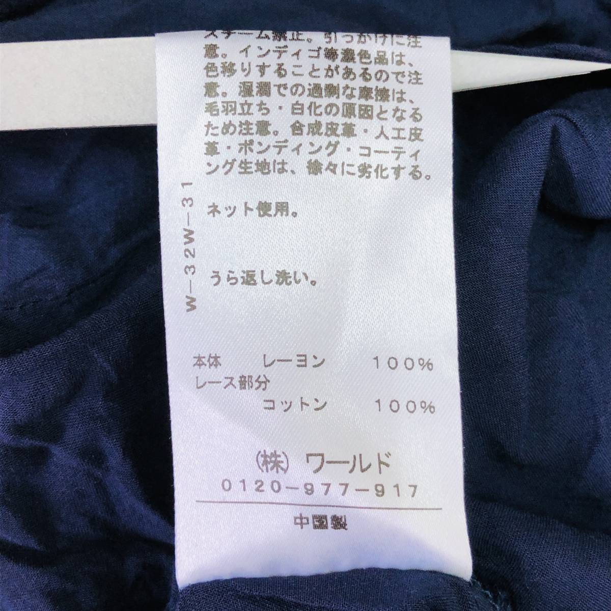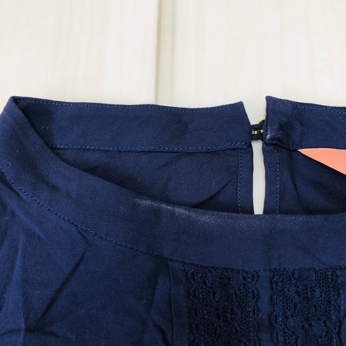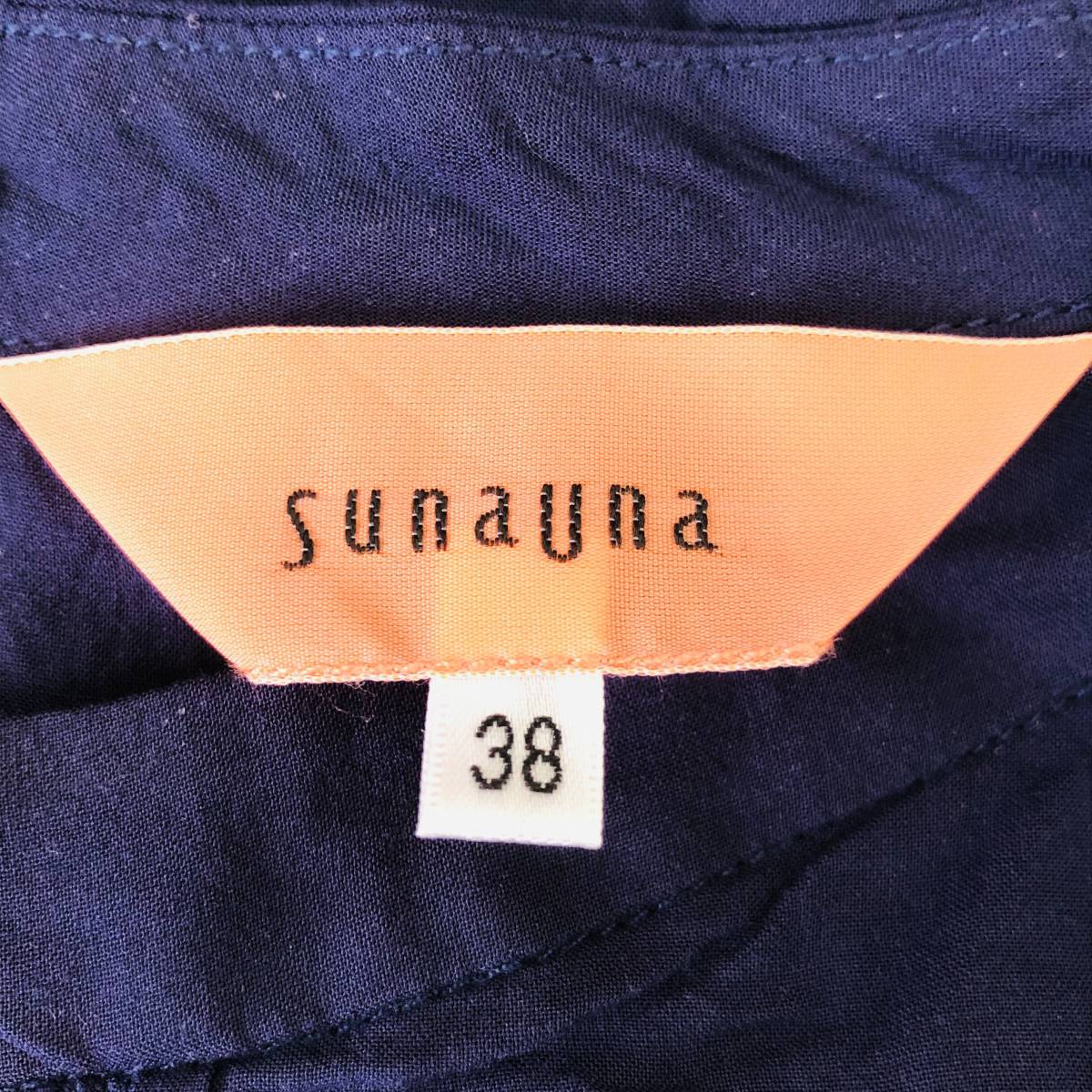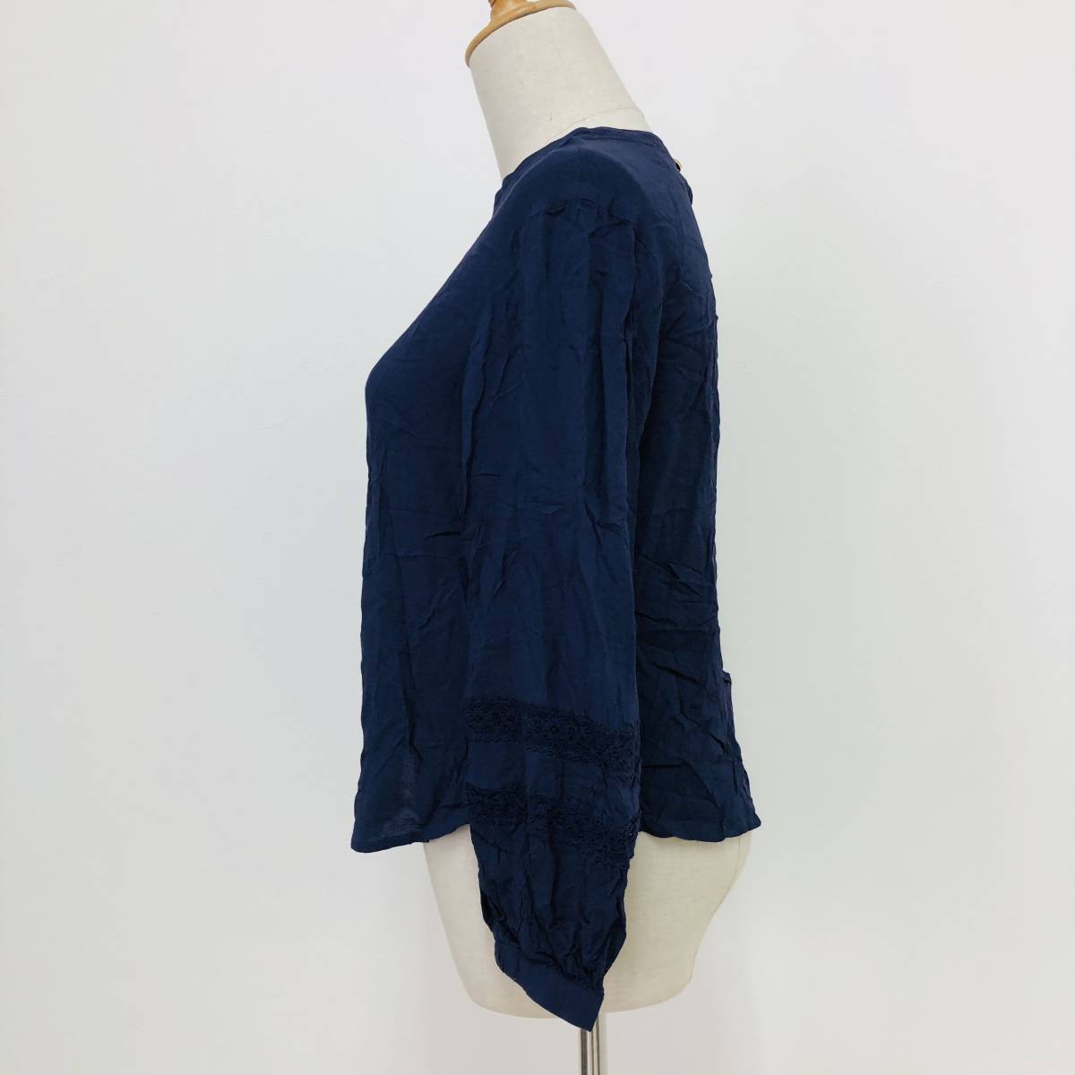 k1966 sunauna スーナウーナ レディース ブラウス カットソー 長袖 薄手 透け感 レース 38 ネイビー 上品 古着 エレガントガーリーチック