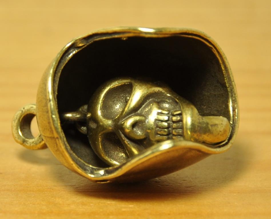 SOLID Brass ブラス 真鍮 Skull スカル ヘルメット ガーディアンベル バイカー お守り 魔除け ラッキーアイテム バイク キーホルダー チャーム