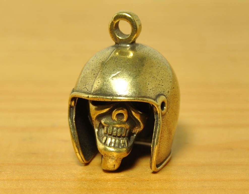 Brass ブラス 真鍮 Skull スカル ヘルメット ガーディアンベル バイカー お守り 魔除け ラッキーアイテム バイク キーホルダー チャーム