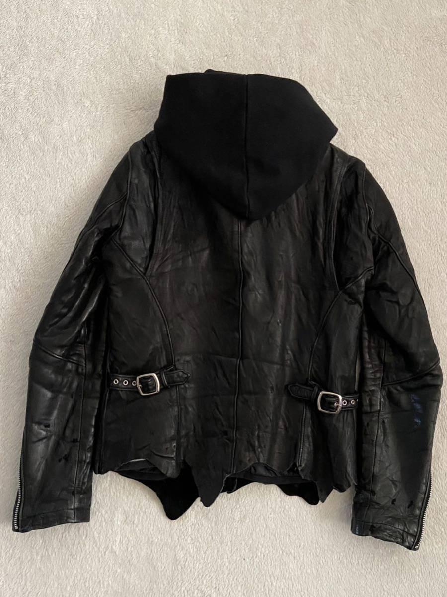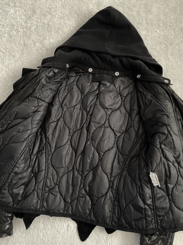gomme レザーライダースジャケット ブラック 黒 ゴム ダブル フード付き 中綿 レザーブルゾン 牛革 カウレザー 希少