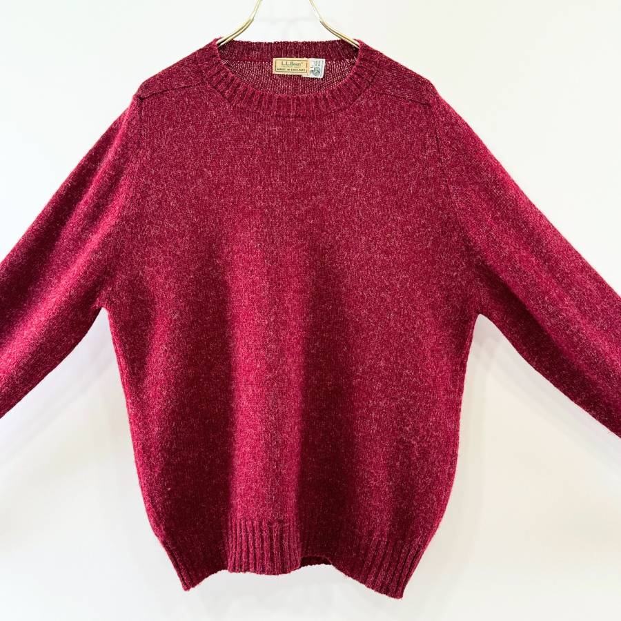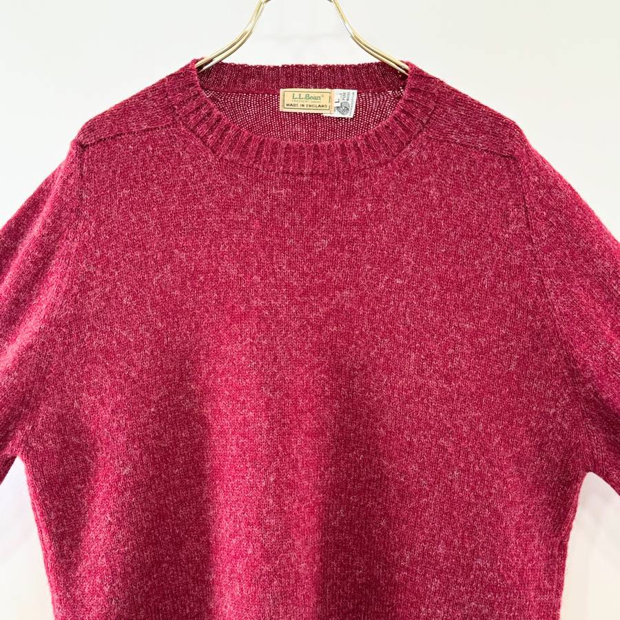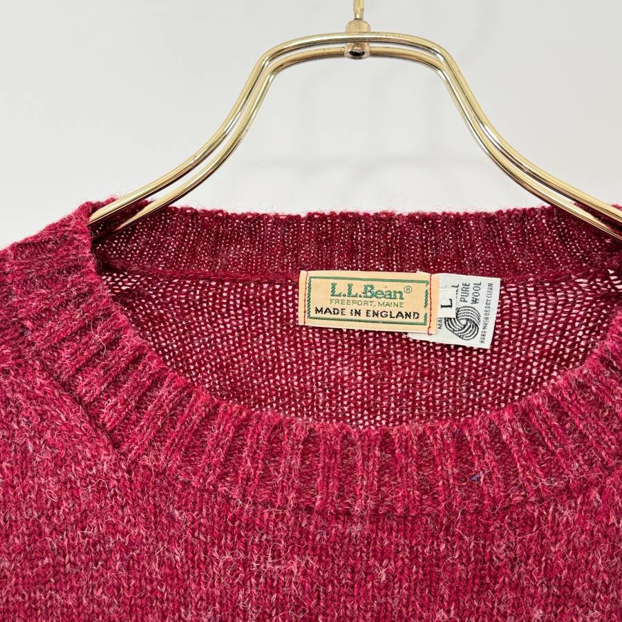 希少《 Mint Condition / Made in England 》80s 90s 極上品【 LLBean 英国製 ビンテージ ボルドー シェットランド 丸首 セーター L ②】