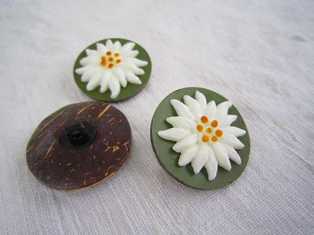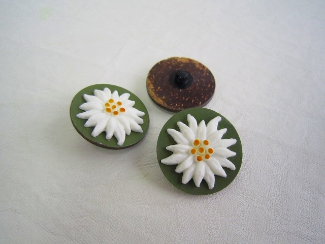 ドイツ エーデルワイスボタン 足付きボタン ココナッツボタン グリーン 31ミリ