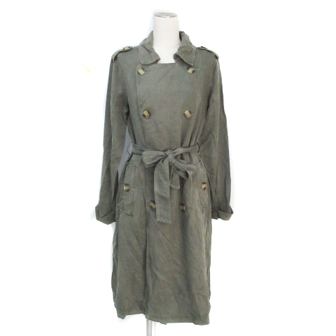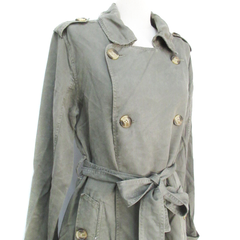 アメリカンイーグル American Eagle トレンチコート スプリングコート ロング丈 ダブルボタン リボン付き XS カーキ /FF3 レディース