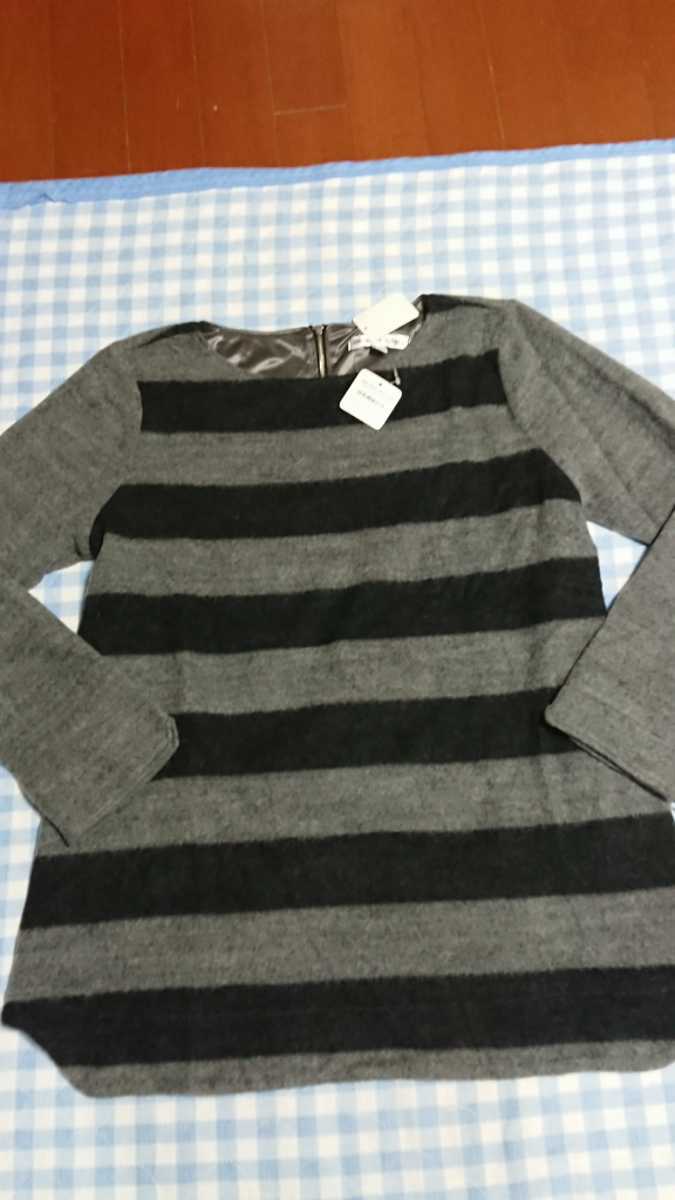 〇♪420☆未使用・保管品☆日本製生地使用 ウール混プルオーバー 黒ボーダーМ