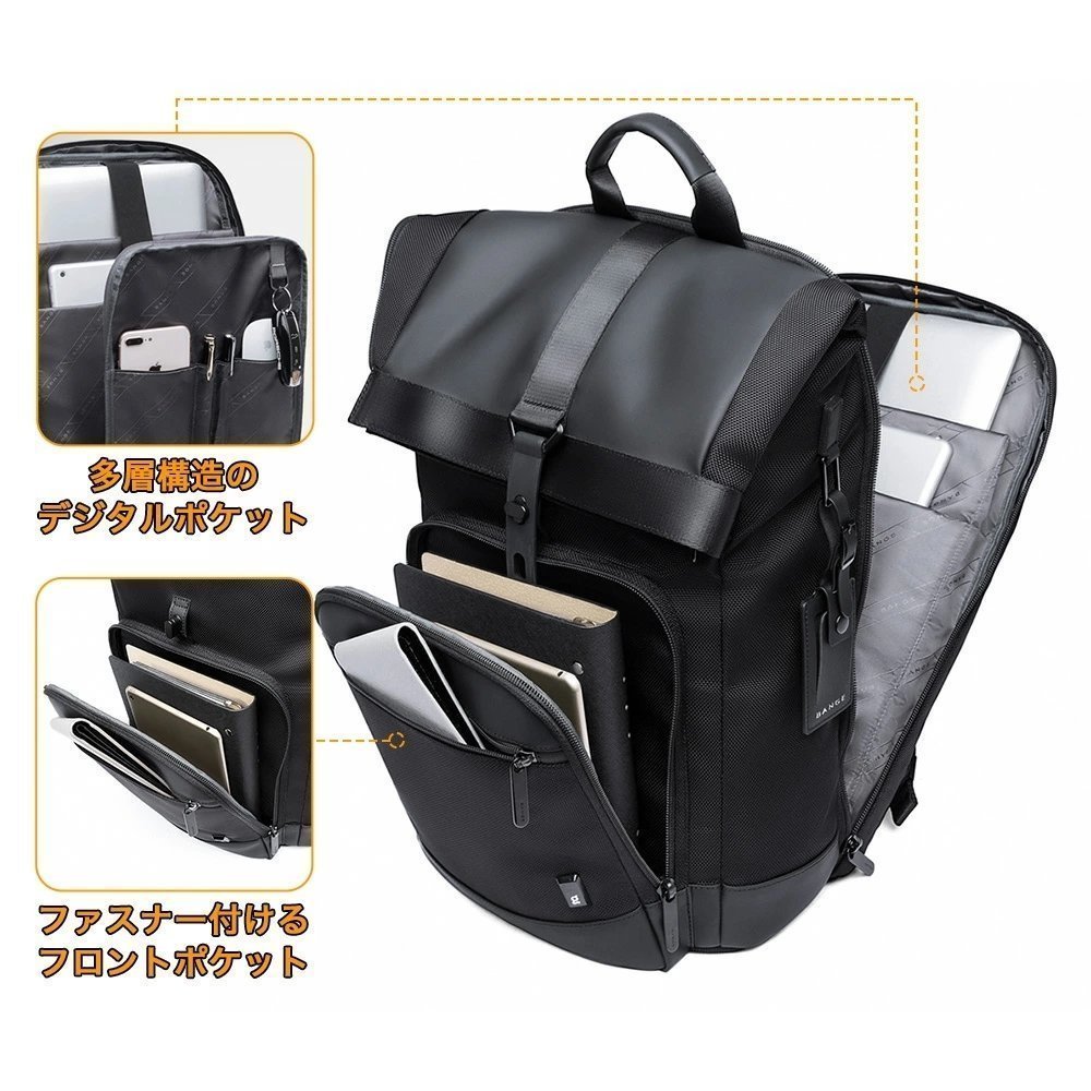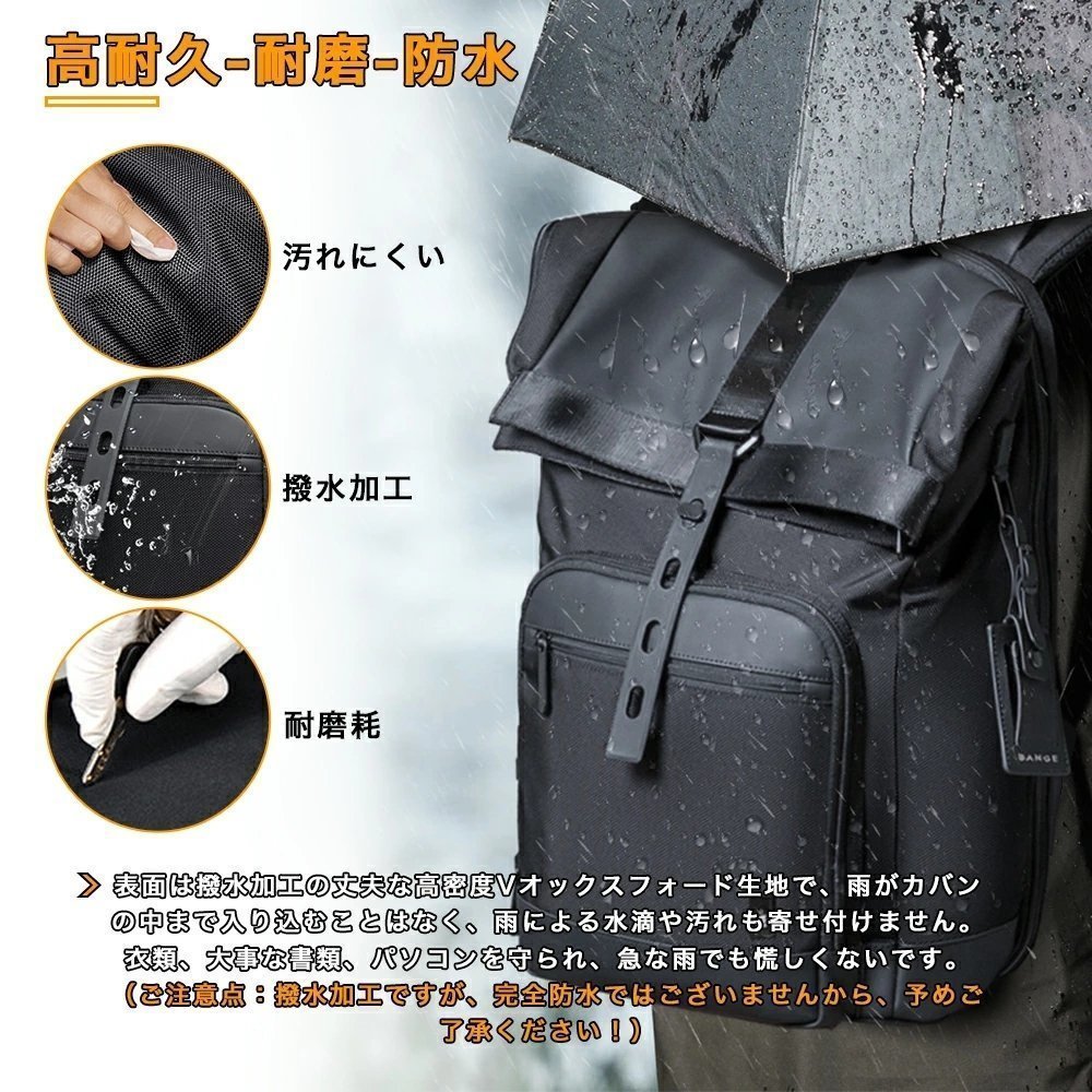 【耐摩擦性 撥水加工】鞄の表面は高密度なオックスフォードで作られ,強く耐久性と耐磨耗を持ちながら、撥水加工で、雨とか、水が表面に残せず、拭き取たら直ぐ元に戻って、浸水の悩みがないです。最前衛のデザインを追求して、カジュアルとビジネス兼用のリュックサック、青春感と成熟感があるブラック色で設計し、シンプルの上に実用でき、通学、通勤、旅行、出張等の対応は問題なしです。