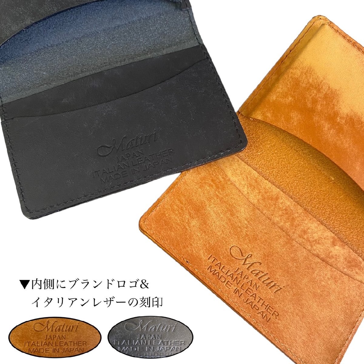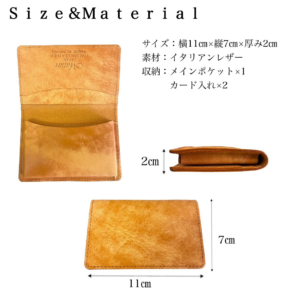 Maturiの新商品! 大人の風格漂う落ち着いた雰囲気の イタリアンレザー、プエブロベリー (ITALIAN LEATHER Pueblo berry)の名刺入れは 日本製で、イタリア植物タンニンなめし協会認定商品になっております。 ハンドメイドによる少し色ムラのある 仕上がりが美しいイタリアンレザーは 使うほどにその風合いをまします。 シンプルだけど、品があり、 さりげなく個性をアピールする、 お相手に好印象を与えてくれるアイテムです。 ■サイズ:約横11㎝×縦7㎝×厚み2㎝ ■素材:イタリアンレザー ■収納:メインポケット×1、カードポケット×2 ※ご注意※革は自然が造り出した理想的な繊維です。 自然由来の素材のため革には細かなシワや傷跡・トラ等が存在する場合があります。 これらは本革である証拠であり、革本来の特長であり、魅力でもあります。 ※新品ではございますが製造上の過程により商品によっては細かな傷やへこみ、剥げ等がある場合が御座います。 また、多少の縫製のゆがみ・ノリの付着がある場合がございます。 ※ご覧のモニターやプラウザの設定、照明等により、画像と実物の色合いが、若干異なる場合が御座います。 予めご理解頂いた上でご購入下さい | |