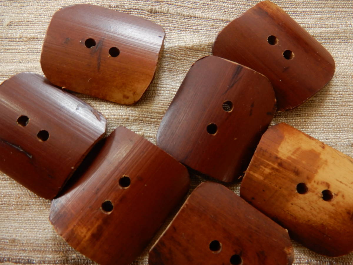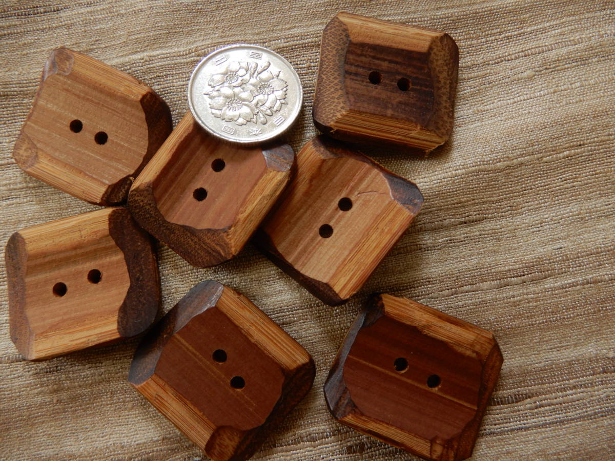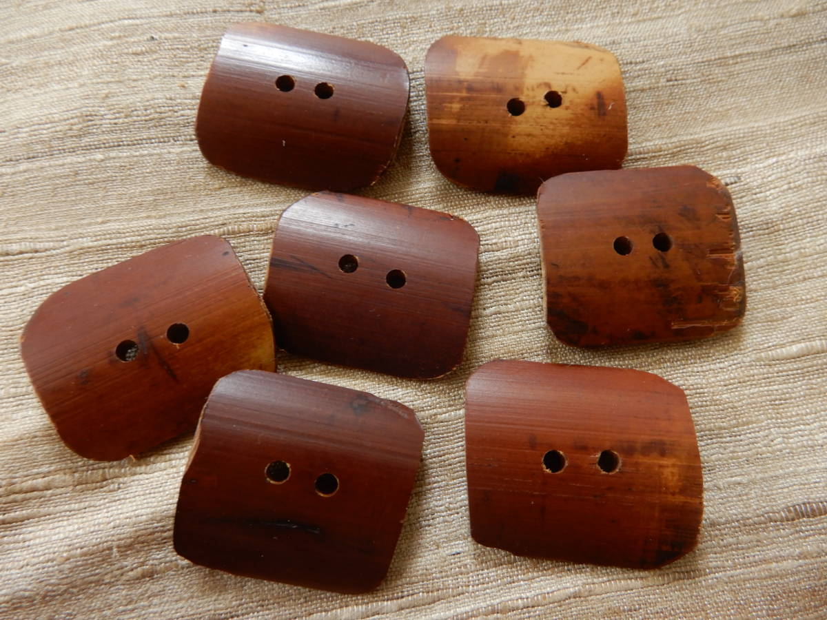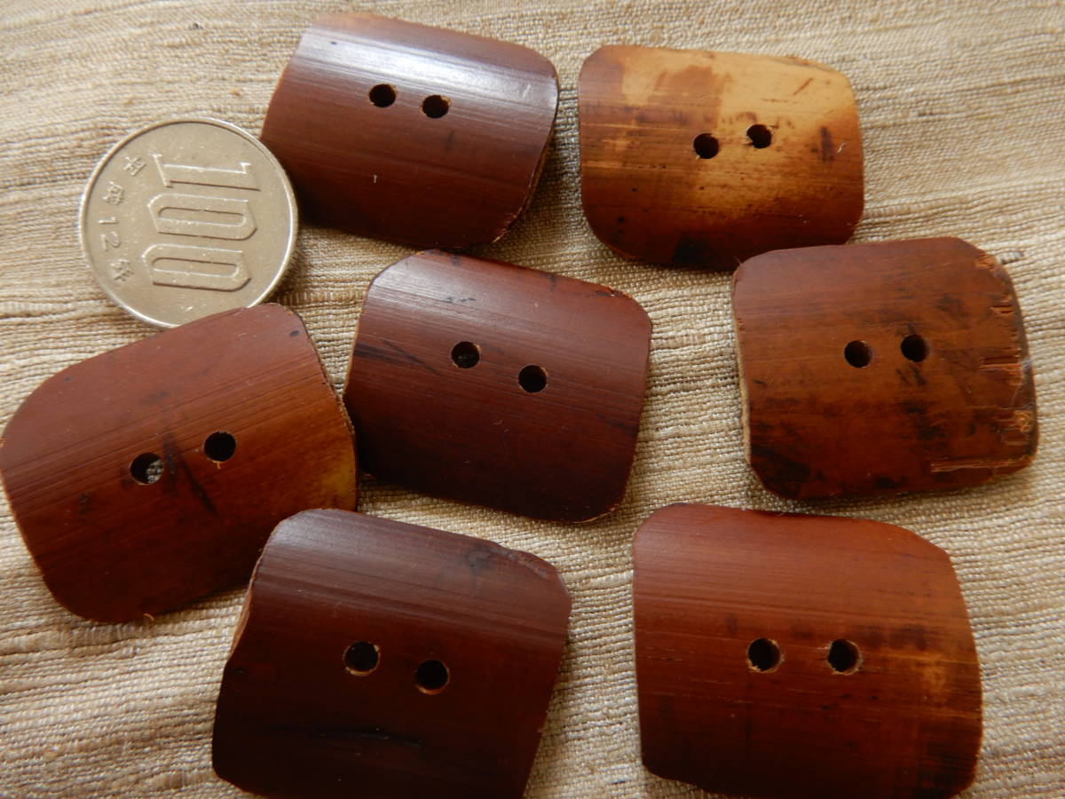 <金の斧>B50 日本の古い古民家 百年煤竹ボタン7個まとめて・古色たっぷり・古布との相性抜群・オリジナル品・送料無料