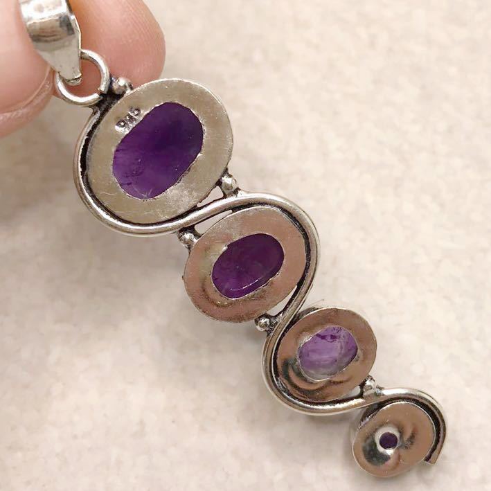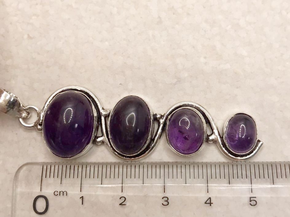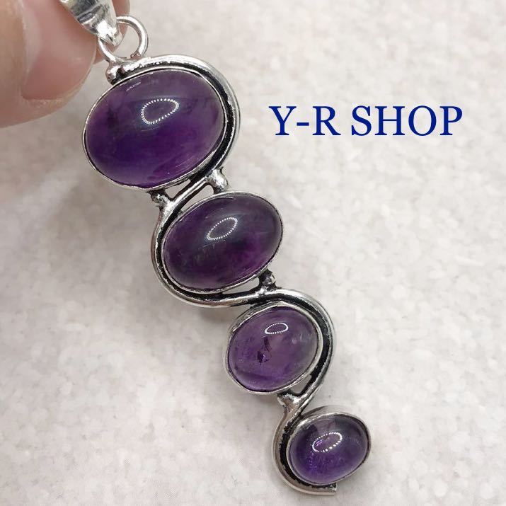 天然石★アメジストのアンティーク調ペンダントトップ ★レディースネックレスシルバー925刻印カラーストーン エスニックインド新品Y-RSHOP