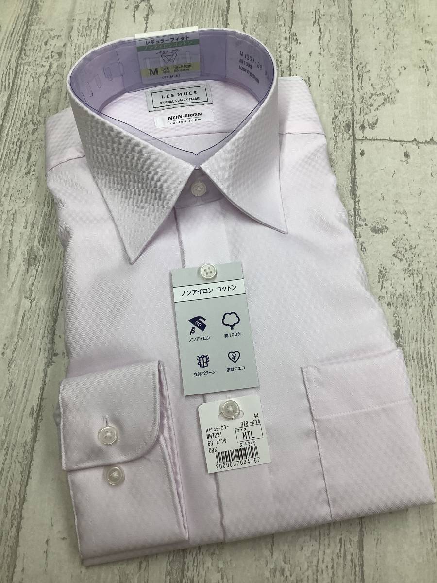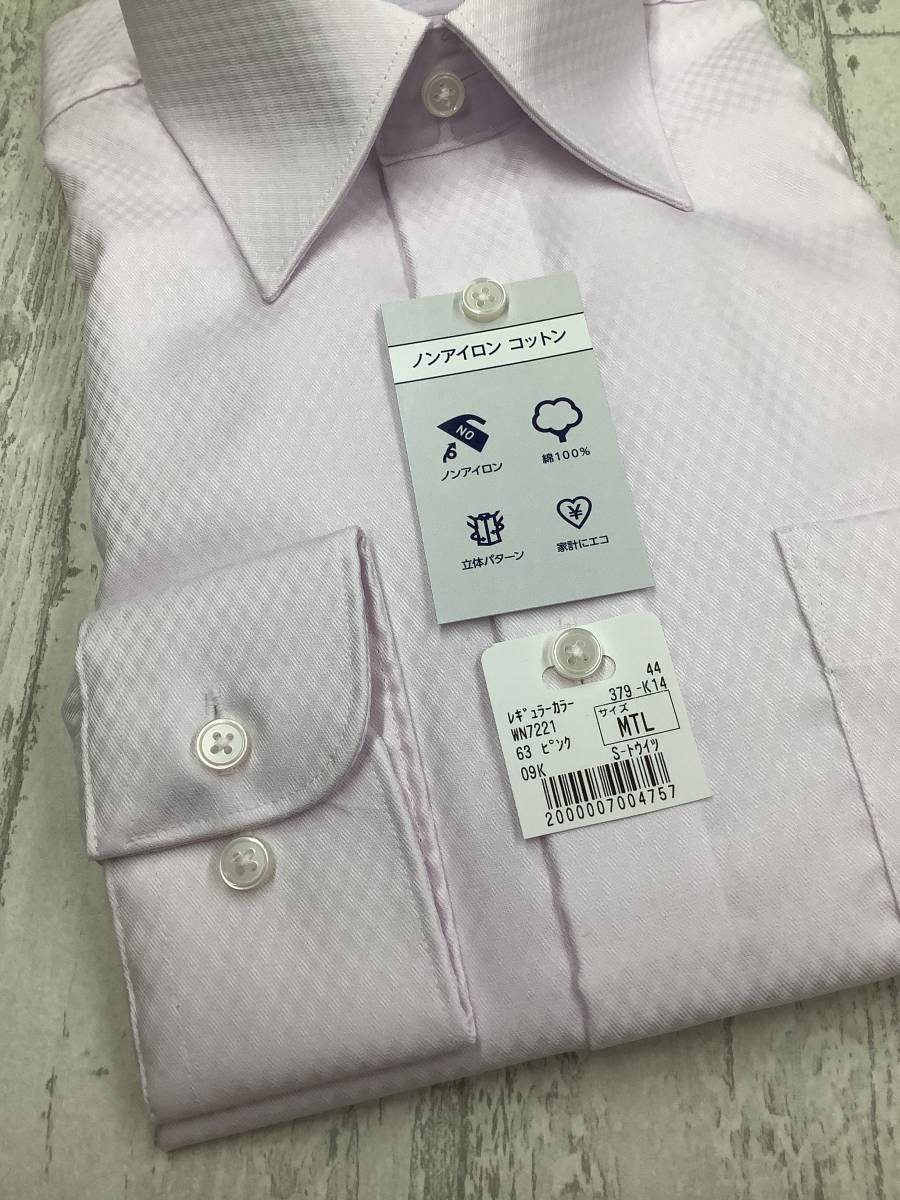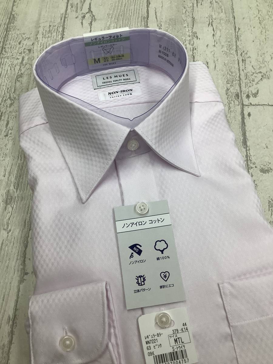 39-88 長袖Mサイズ ★ピンクチェックドビー生地 レギュラードレスシャツ 定価4,990円 綿100%ドレスシャツ