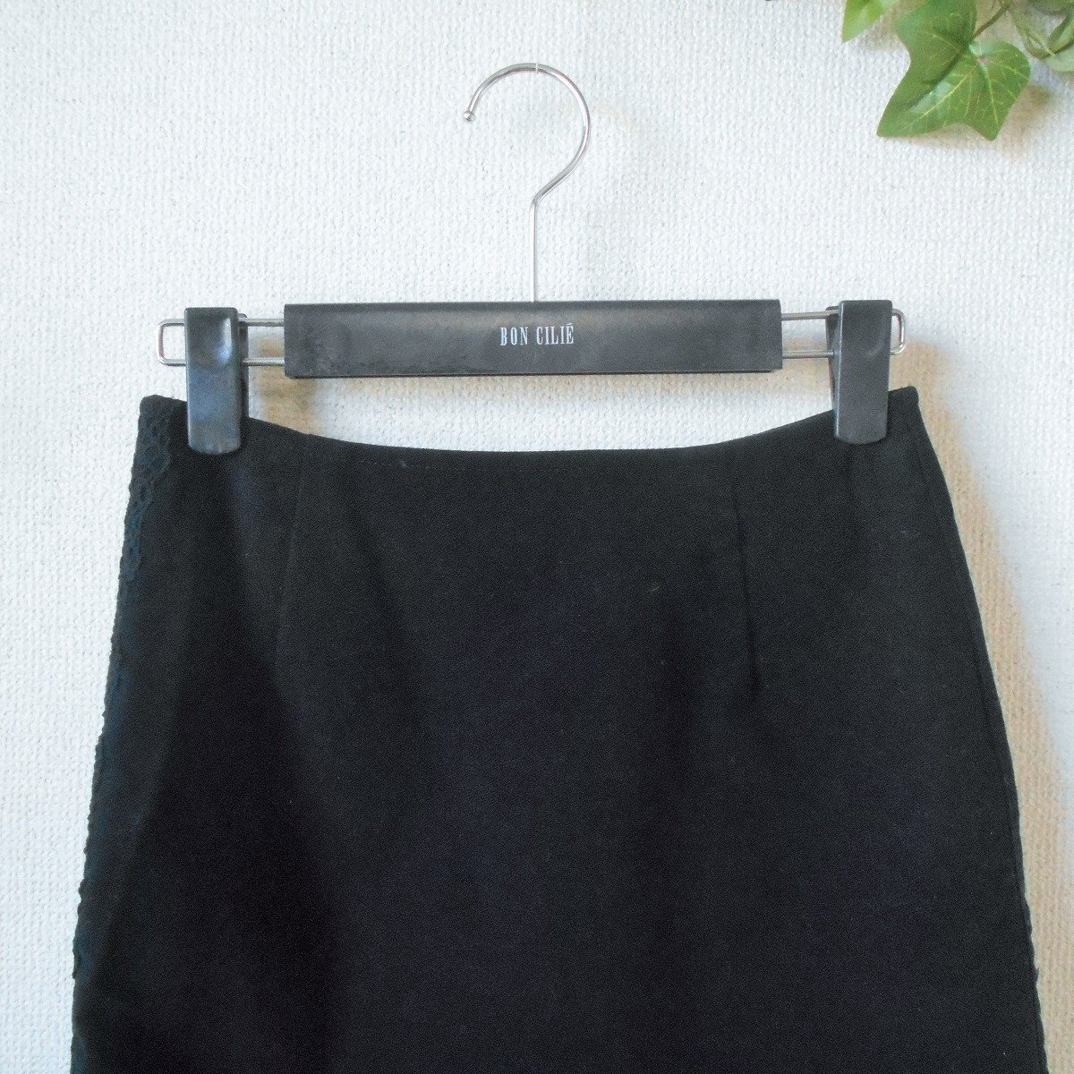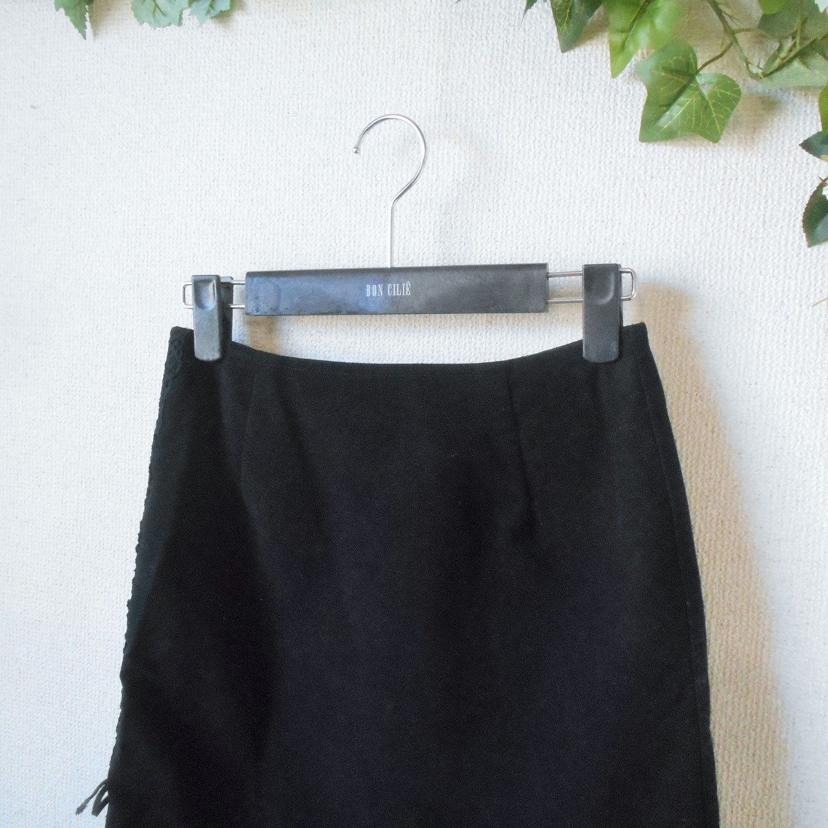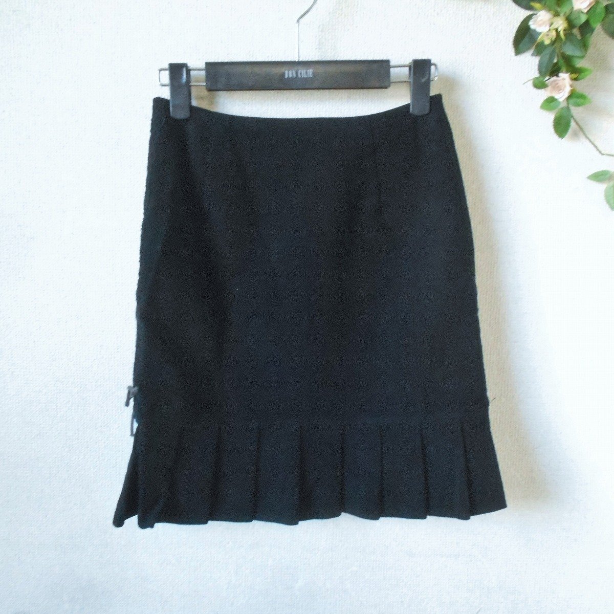 レストローズ LEST ROSE 裾 プリーツ 入り スカート 黒 M サイド レース & レースアップ リボン