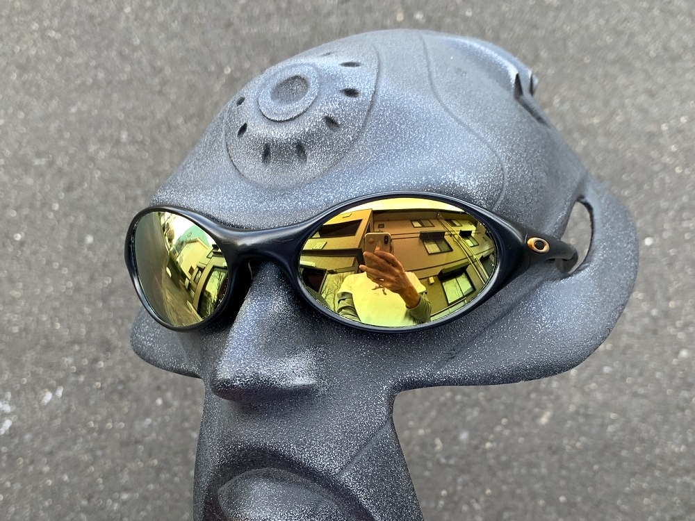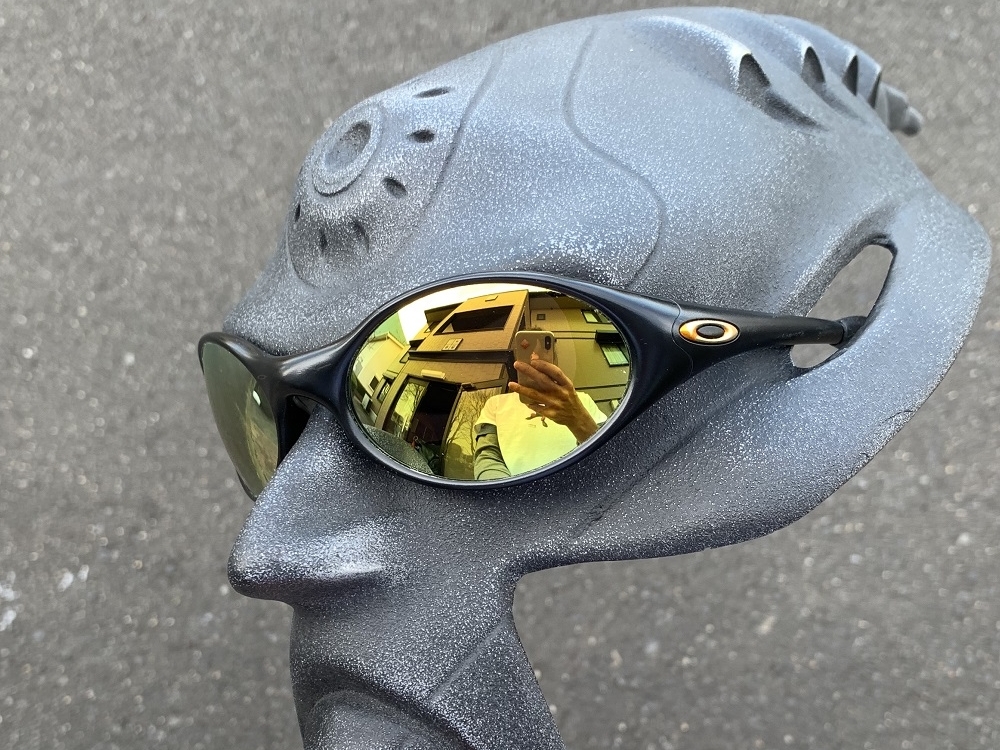 濃いめのレンズにブラウンレンズに明るいゴールドミラー。目が透けて見えることはありません。ベースレンズはブラウンなので、少し明るめに感じ、コントラストのある視野を提供してくれます。プリズム補正機能(Dセンター)レンズなので、視界のゆがみも矯正します。ミラーはプラチナミラーという特別なミラーが付いていて、高級感のある、レンズの印象は深い光沢のあるゴールドになります。<レンズの詳細>・ミラー:明るいゴールド・ベースレンズ:ブラウン・透過率:11.00%・レンズカーブ:8・レンズの厚さ:1.6mm - 1.4mm・夜間の運転不可 /昼間の運転可※レンズ交換は手で簡単に行えます。パチンと外して、パチンと取り付けるだけです。※画像に写っているフレームは付属しません。 レンズ(1ペア)のみの出品になります。
