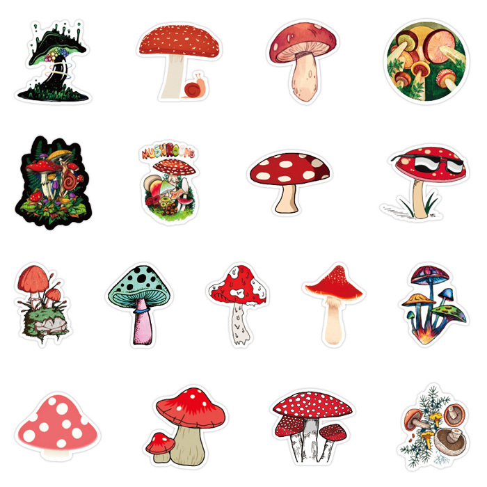 50枚 ステッカー きのこ 防水 耐水 シール 詰め合わせ 0435