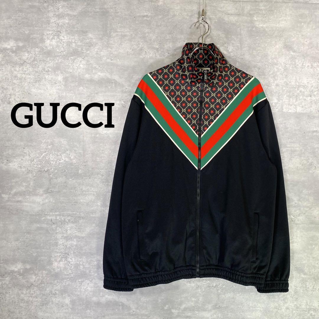 スターがあしらわれたGG柄をシェリーラインで切替にしたデザインのジャケットです。
