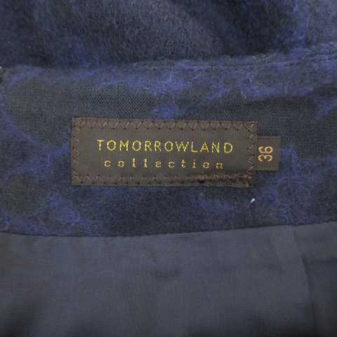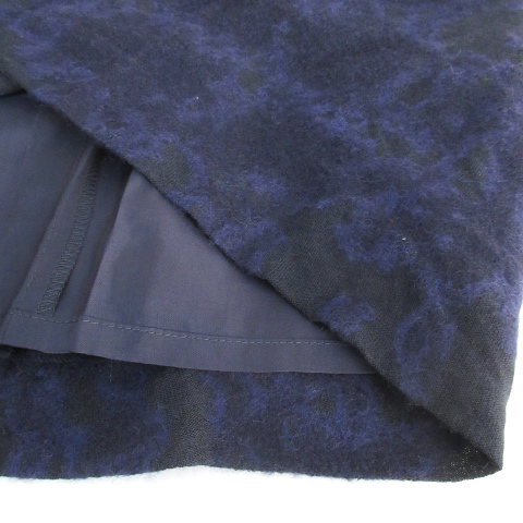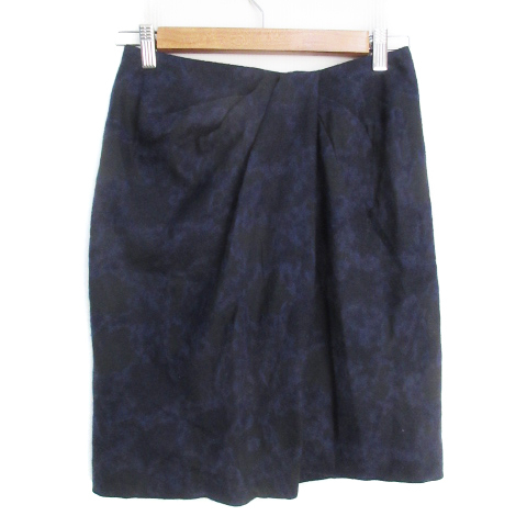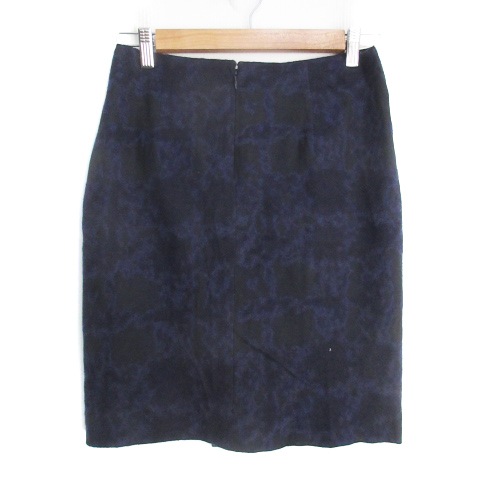 トゥモローランドコレクション TOMORROWLAND collection タイトスカート ひざ丈 ウール 総柄 36 紺 黒 ネイビー ブラック /FF36 レディース
