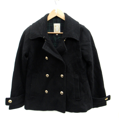 カージュ Khaju Pコート ピーコート ショート丈 ウール 36 黒 ブラック /SM42 レディース