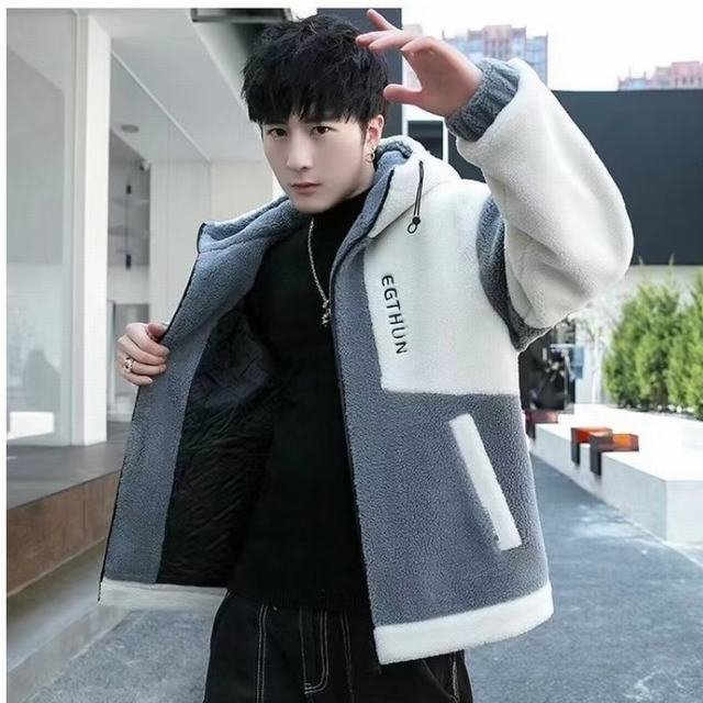 メンズ フリースジャケット フリース ジャンパー アウター ボアジャケット ブルゾン パーカー 裏起毛 フード付き 防寒 厚手 ベージュ L