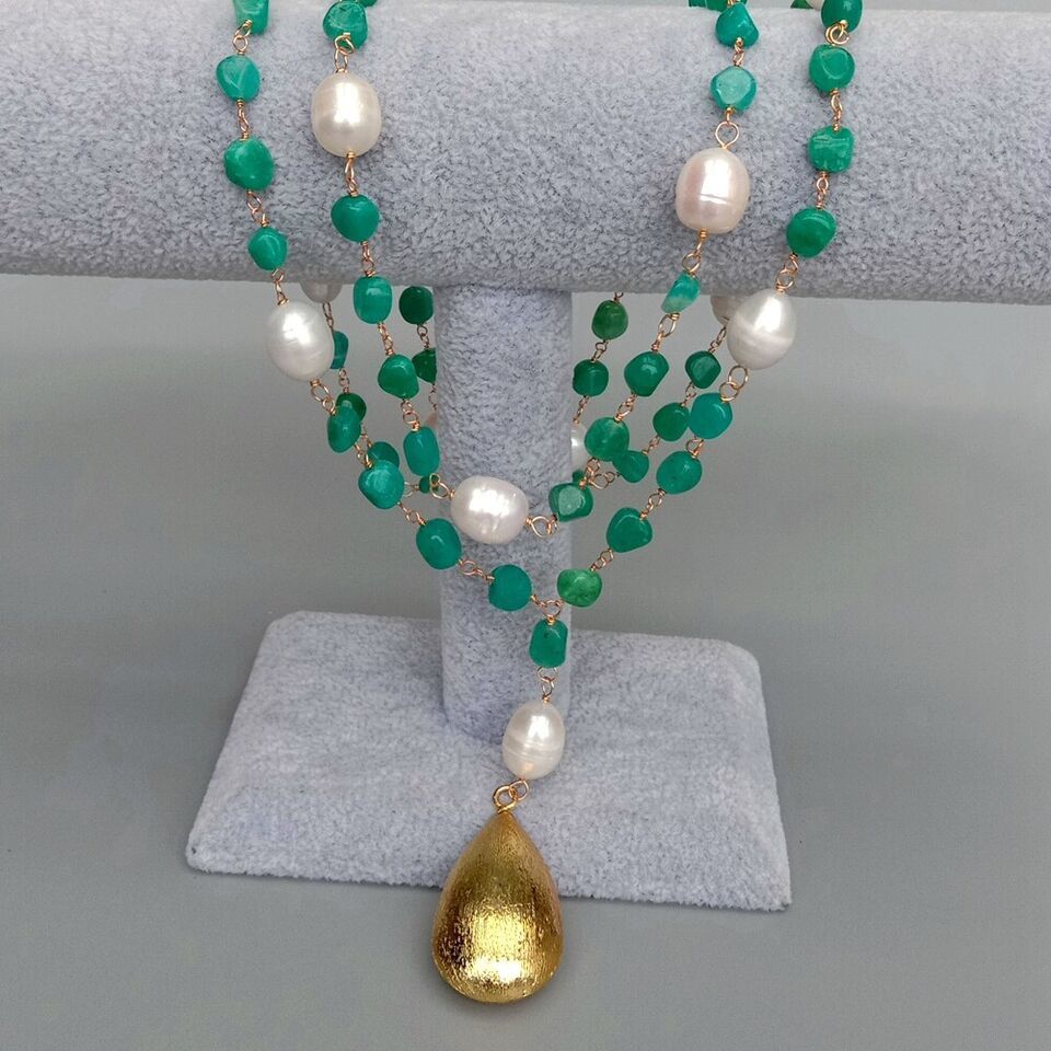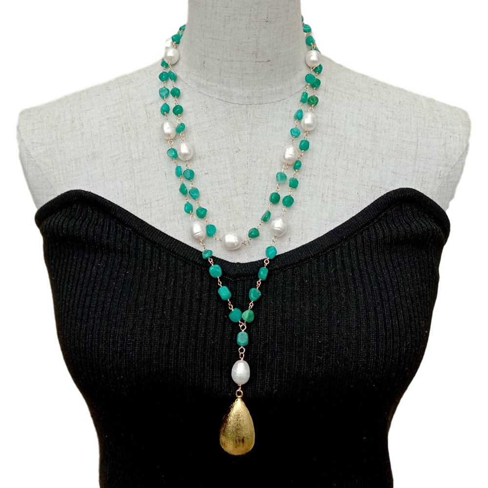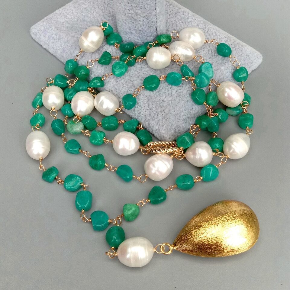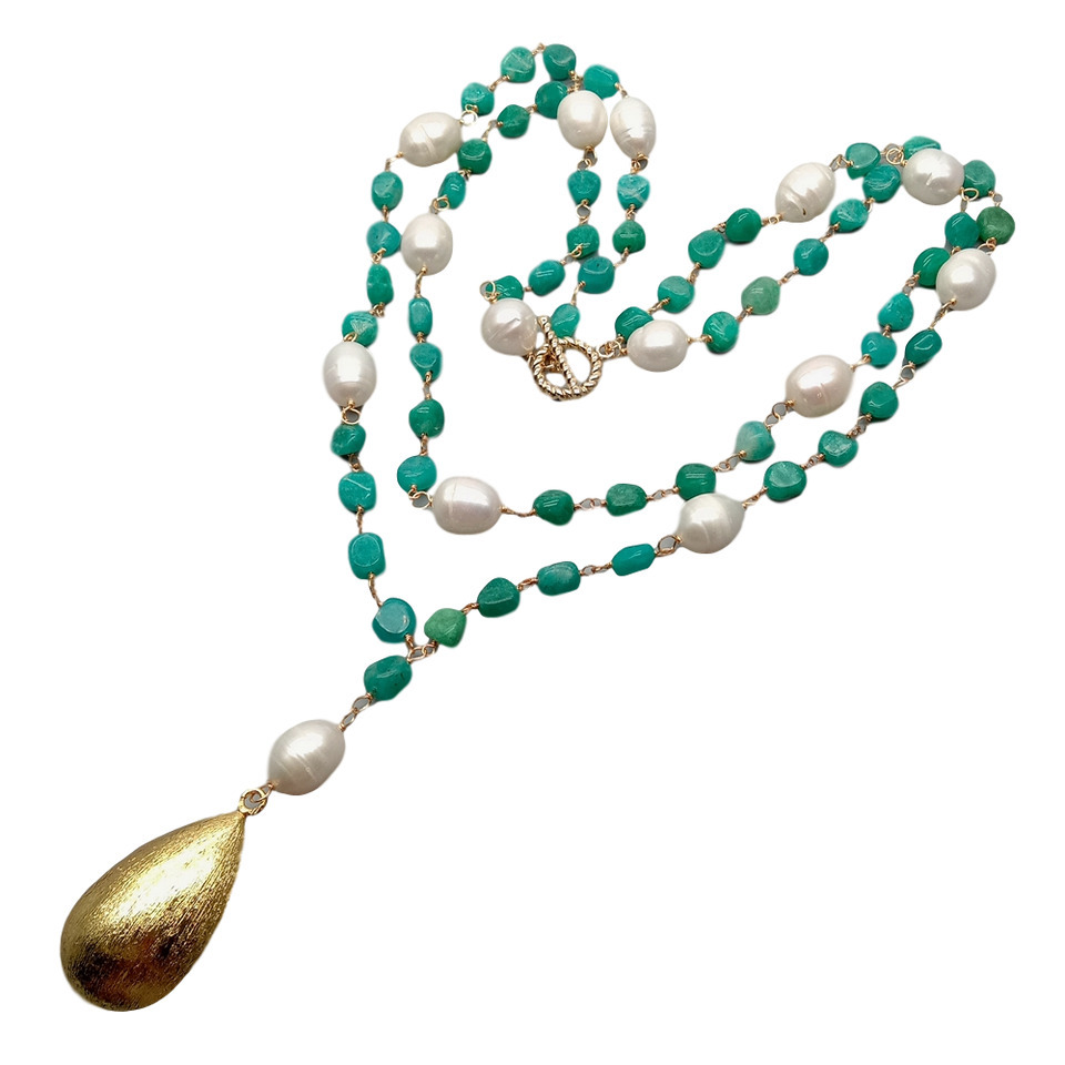 <新品>ホワイト 淡水養殖 ライス パール 真珠 天然 アマゾナイト 21インチ ネックレス 結婚式 プレゼント パーティー ギフト