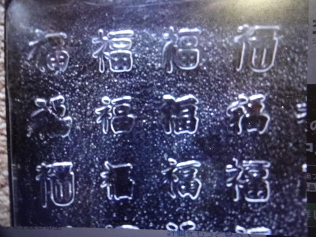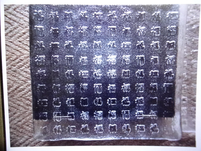 縁起の良い透明クリスタル和風角大皿。 未使用新品86%引き!お洒落な”福”の字が縦横に10文字の100文字が彫られた百福2枚組。