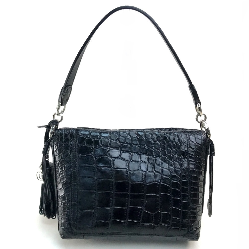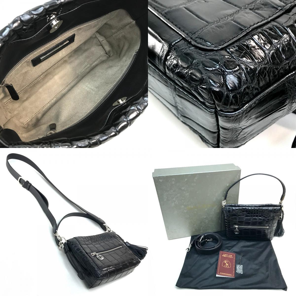 商品説明クロコレザーのJRAタグつきで、ワシントン条約に基づき正しく輸入された皮革を使用して日本で製造された日本製品であることの証です。ショルダーストラップやタッセルは取り外し可能で、シーンにやコーディネートに合わせて幅広くお使いいただける使い勝手の良い2WAYバッグです。