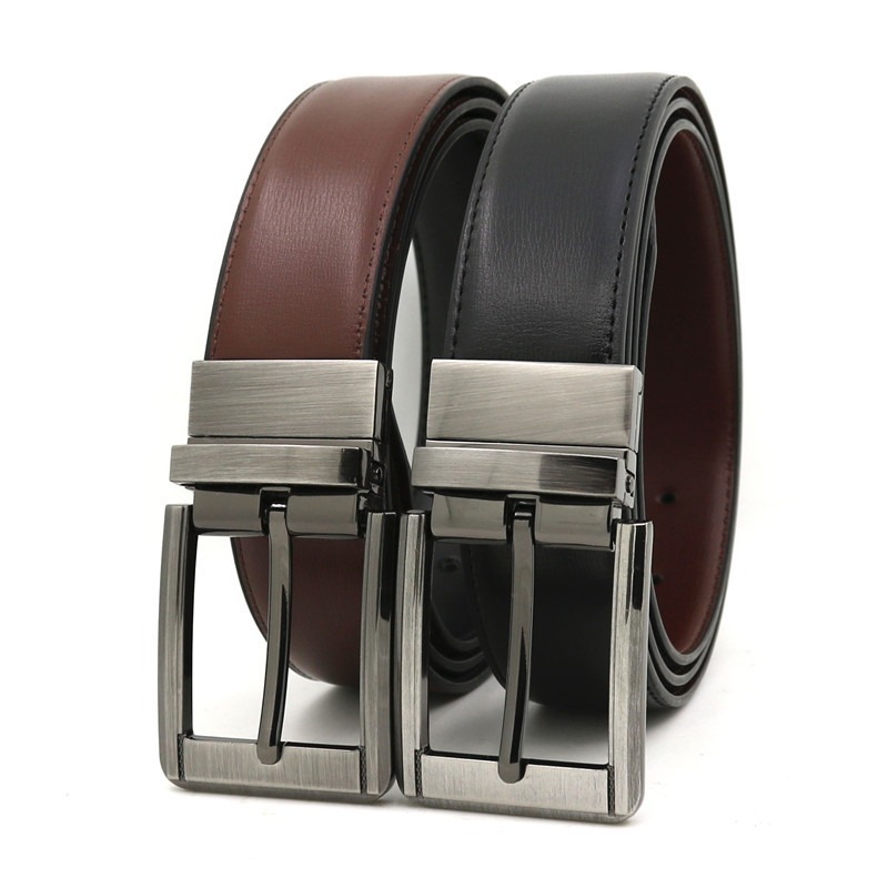 リバーシブル デザイン レザーベルト ◆ 本革 メンズ ブラック ブラウン 黒 茶 フリーサイズ 新品 未使用 ビジネス カジュアル 【PN226-6】