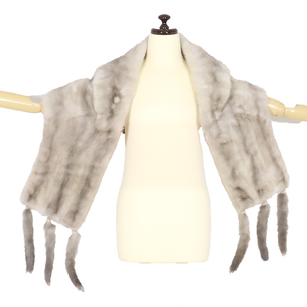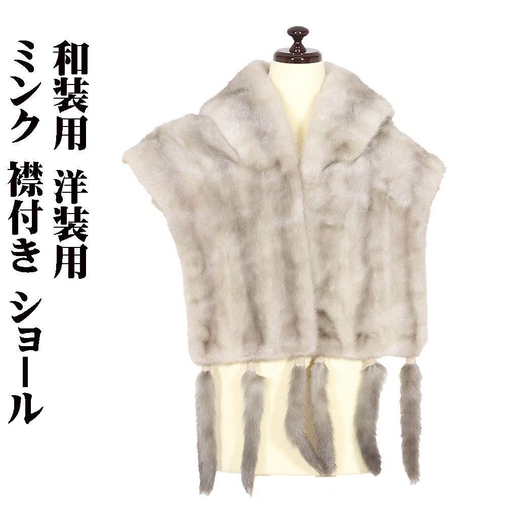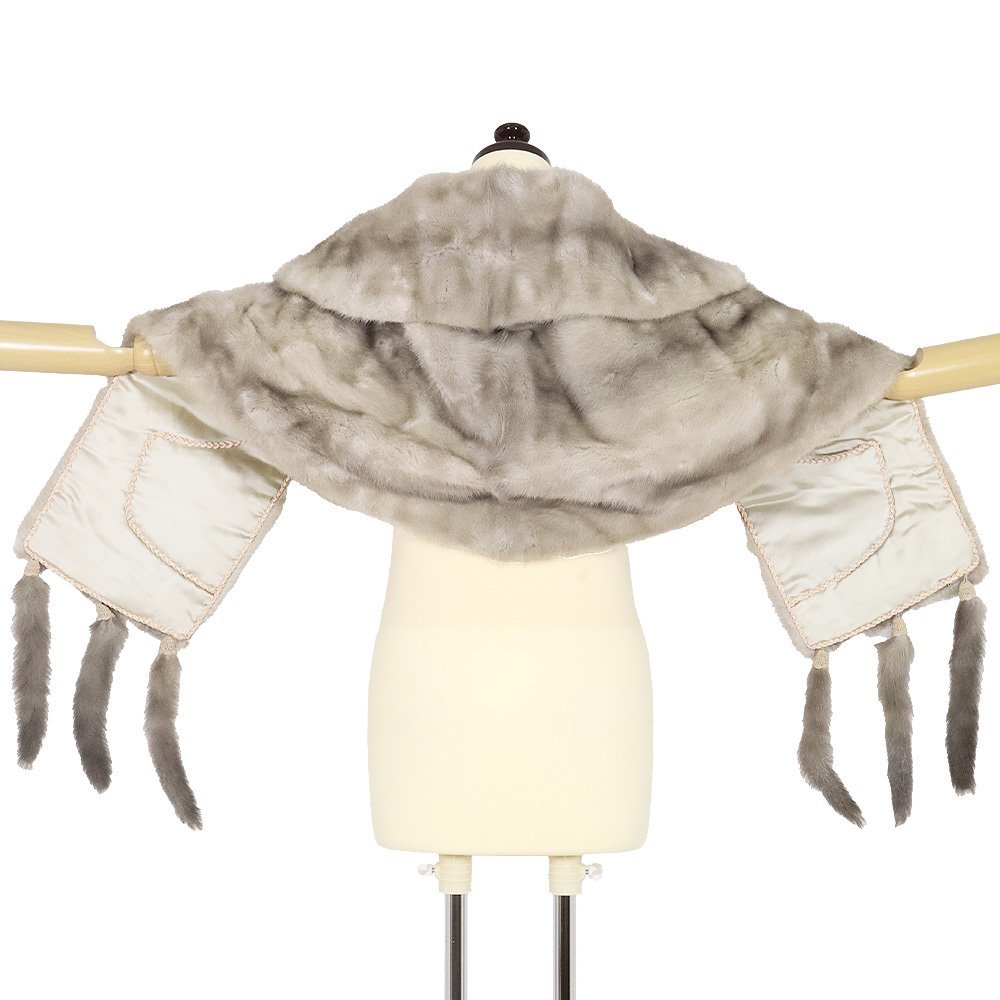 | ミンクストール ショール フリンジ3本 グレー・ブラウン暈し 襟付き |