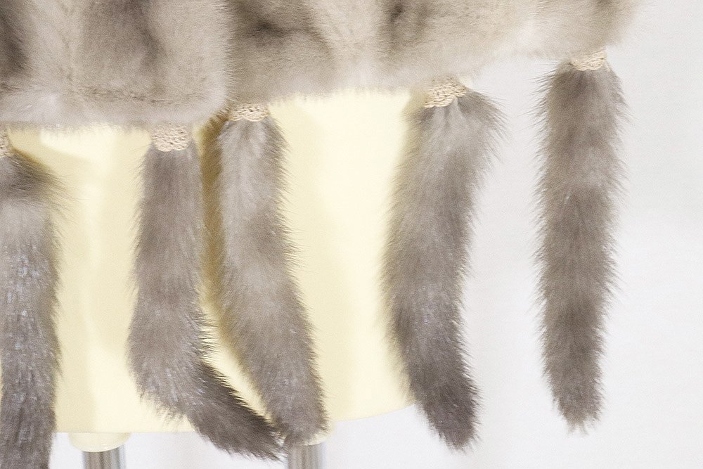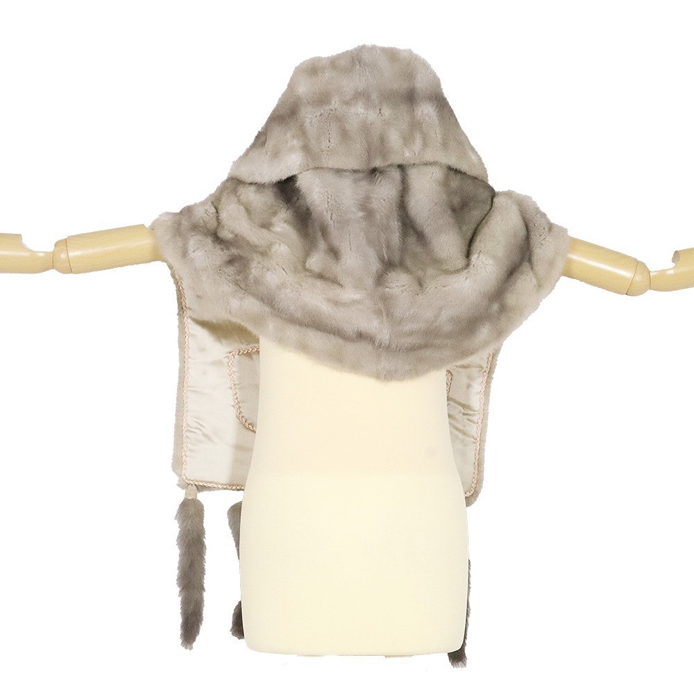 ミンクストール ショール フリンジ3本 グレー・ブラウン暈し 襟付き (写真では上手く色が出ない場合があります。ご了承下さい) |