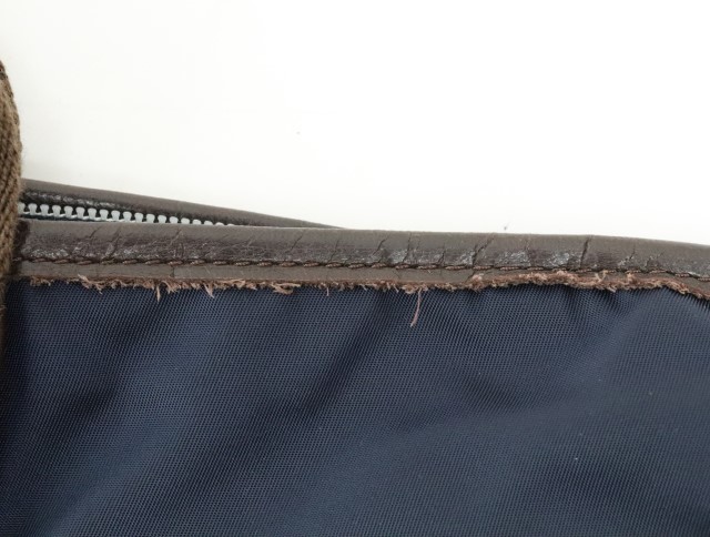 状態 | 少々の使用感はありますが、全体的にはきれいなお品になります。 正面ポケットに少々のしっとり感があり、持ち手部に僅かにスレがあります。(画像有り) 上部に少々の毛羽立ちがあり、正面部にシワがあります。(画像有り) 状態は画像を参考にお願いします。 |