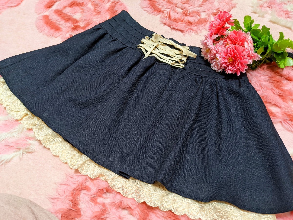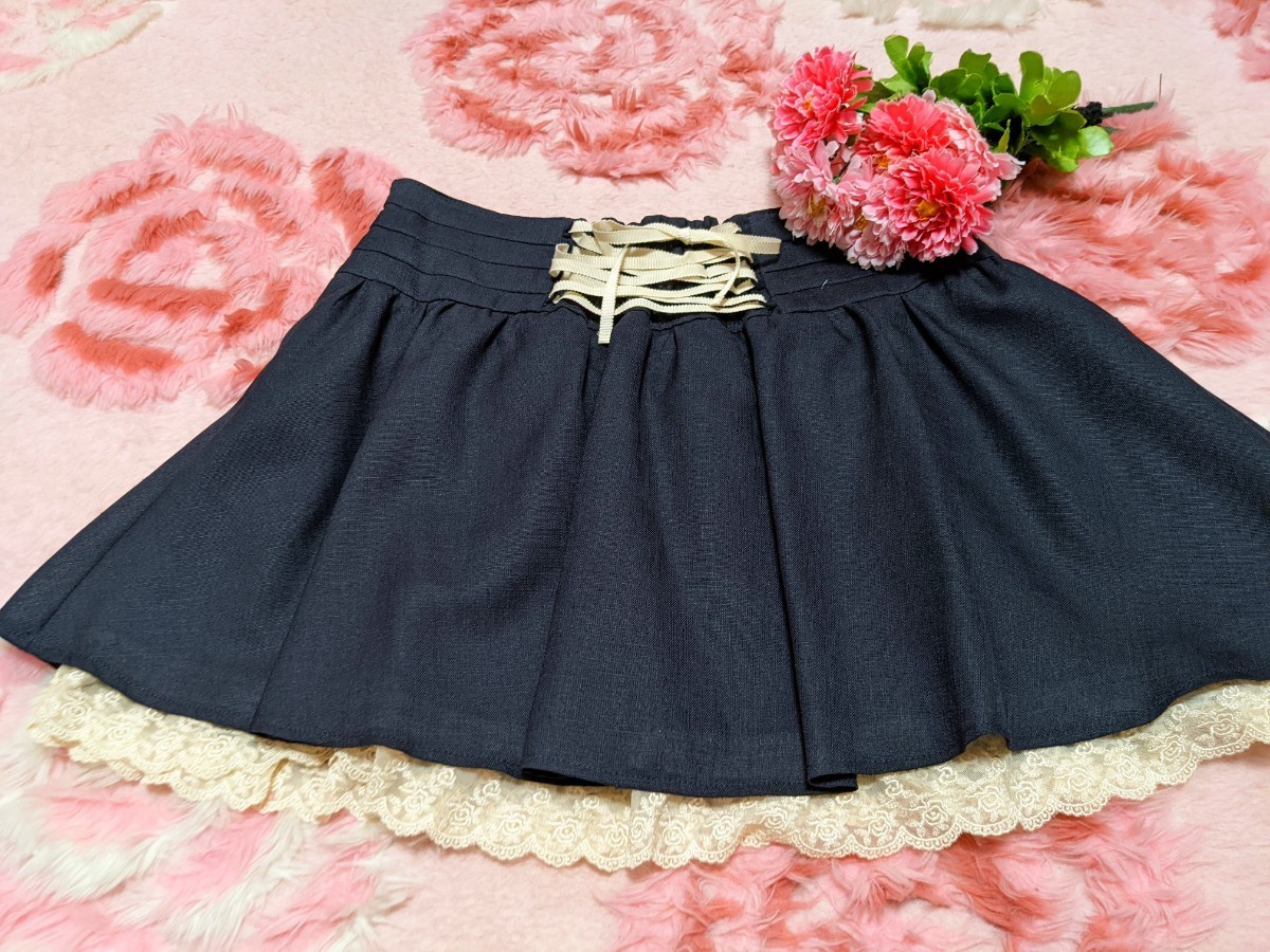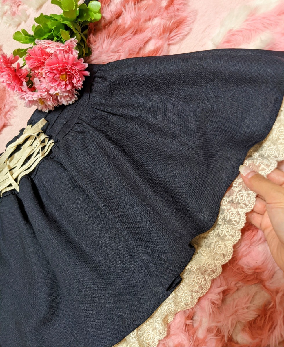 裏地の裾に白い花柄フリルが沢山ついた可愛らしいスカートなので良かったらご購入よろしくお願いします!