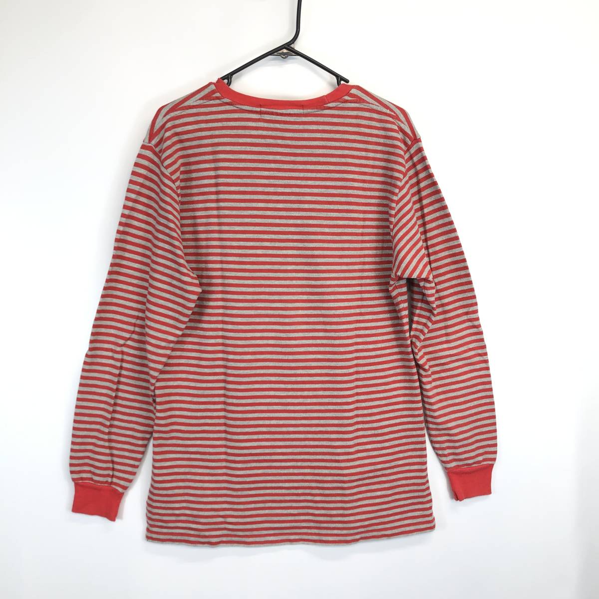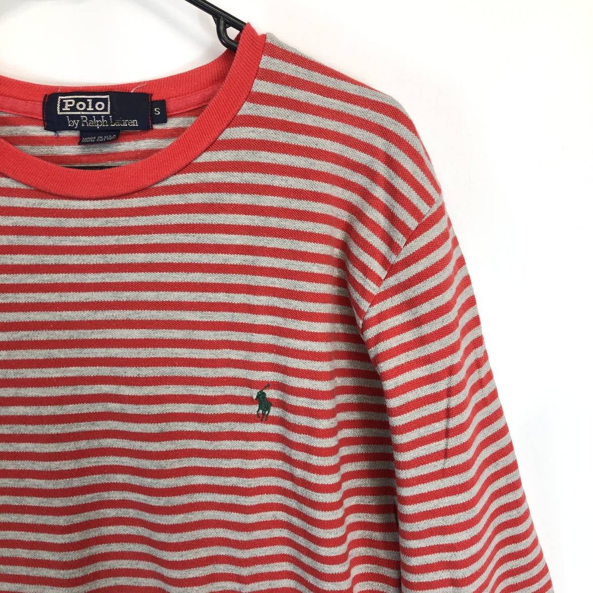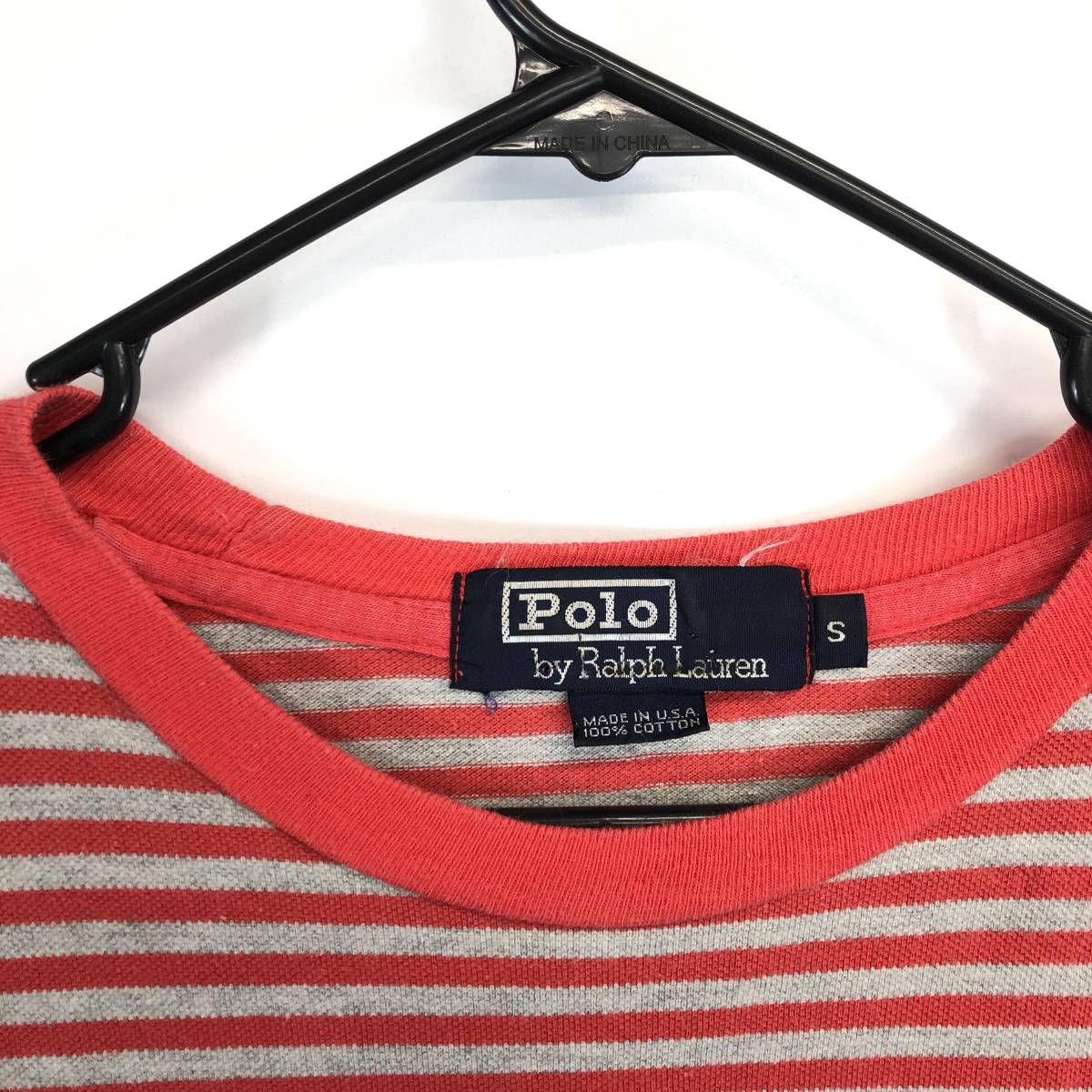 90s USA製 ラルフローレン Ralph Lauren ボーダーTシャツ 鹿の子 コットン Sサイズ レッド グレー