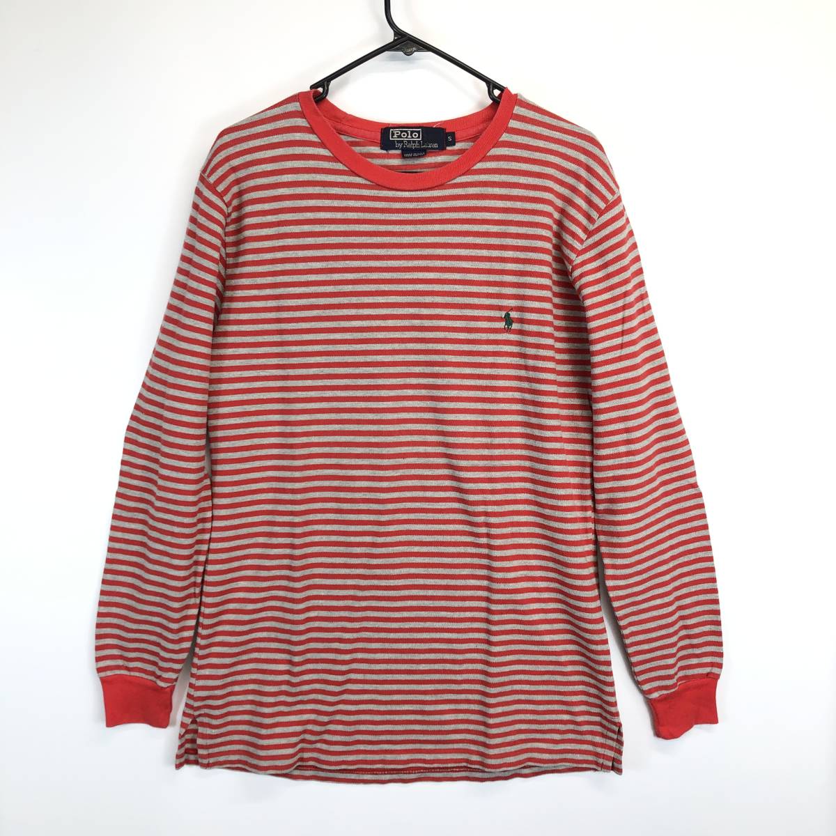 90s USA製 ラルフローレン Ralph Lauren  ボーダーTシャツ 鹿の子 コットン Sサイズ レッド グレーの出品です。
