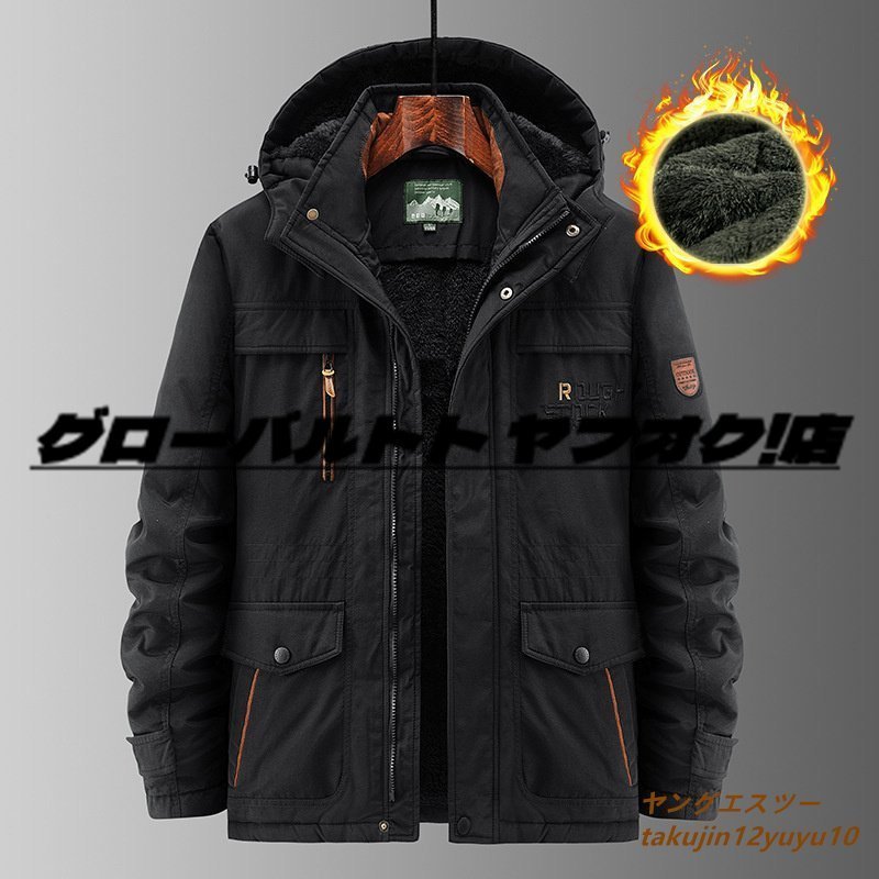新品 アウトドアジャケット 裏ボア メンズ ジャンパー ブルゾン マウンテンパーカ刺繍 ミリタリー ワッペンma-1防水 アウター ブラック XL